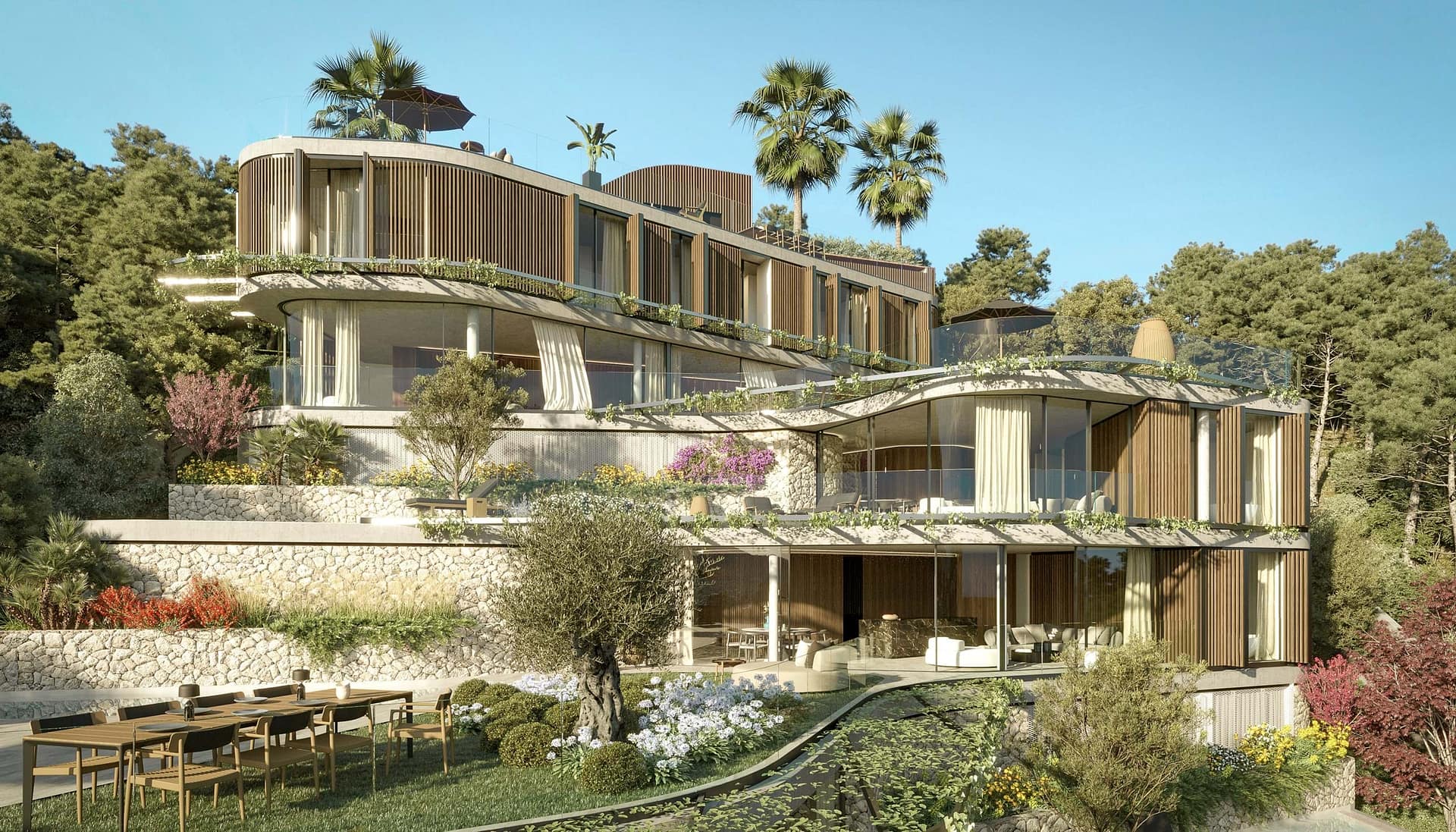 Architect Jordi Herrero was given free rein to unleash his creative genius. No compromises were made in terms of fulfilling his lofty ambitions. The result is a development that has meticulously crafted with a keen eye for detail. As a result, the team behind Andratx Hills constantly evaluates any new circumstances. That may arise to ensure that the project remains true to Herrero’s vision.