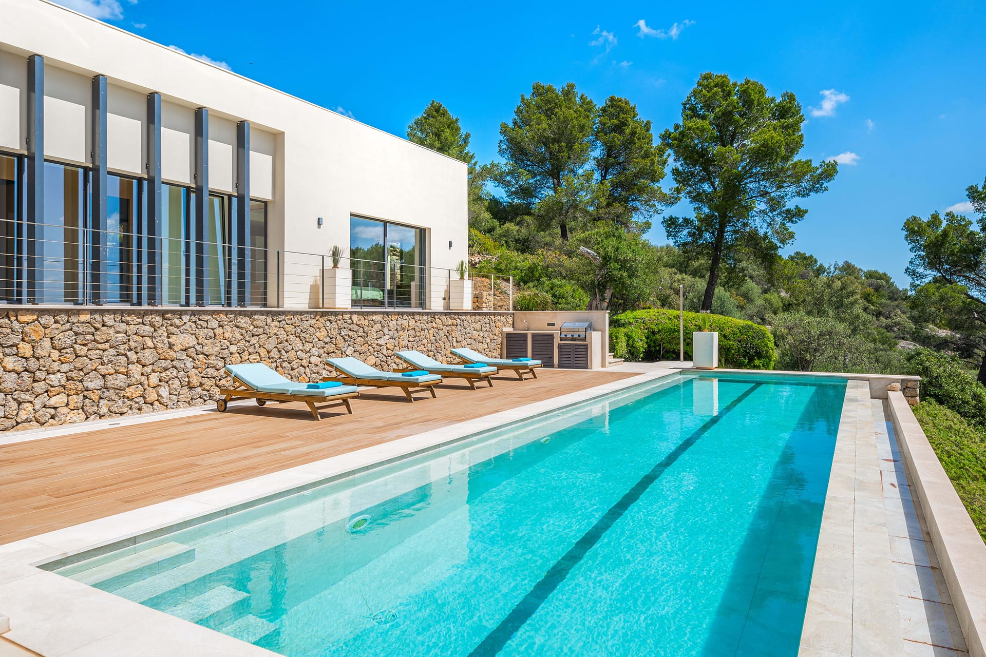 Discover an extraordinary villa nestled in the serene beauty of Selva. This stunning property, boasting 340 square meters of meticulously crafted living space, is set on a sprawling 50,000 square meter plot, offering unparalleled privacy and breathtaking views. The villa features three elegantly designed bedrooms, two luxurious bathrooms, and one en-suite master bedroom, ensuring comfort and sophistication. An additional office room provides the flexibility to create a fourth bedroom with its own en-suite bathroom. Enjoy the modern comforts of underfloor heating throughout the house, ensuring warmth during the cooler months. The property is equipped with hot and cold air conditioning, guaranteeing a perfect indoor climate year-round. This off-grid, independent villa is a testament to sustainable living. Designed to be self-sufficient, it seamlessly blends luxury with eco-friendly practices. Step outside to the large swimming pool and soak in the panoramic mountain and sea views. The pool area is perfect for both relaxation and entertaining guests. A spacious garage provides ample room for your vehicles and additional storage. The villas design emphasizes a strong connection with nature, featuring large glass doors that open to expansive terraces, allowing natural light to flood the interiors and providing stunning views from every room. The interiors are a blend of modern elegance and traditional charm, with high-quality finishes and attention to detail evident throughout. The property is surrounded by beautifully landscaped gardens and natural Mediterranean flora, creating a peaceful and private retreat. This exceptional villa is more than just a home; its a lifestyle. Perfectly suited for those who value privacy, sustainability, and luxury, this property is a rare find in the picturesque region of Selva. Contact us today to arrange a private viewing and experience the unparalleled charm and luxury of this magnificent villa. Your dream home awaits in Selva.