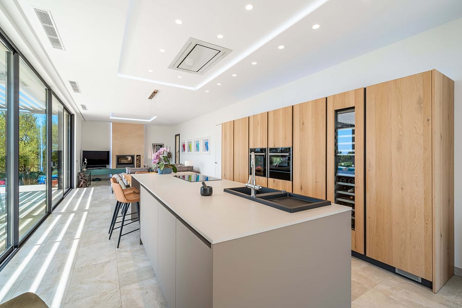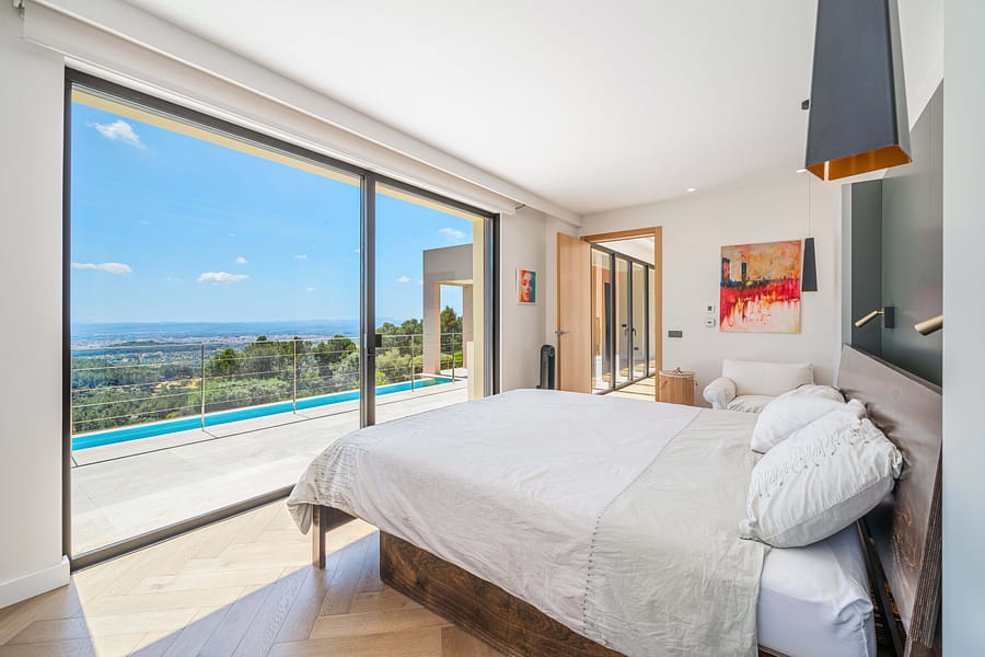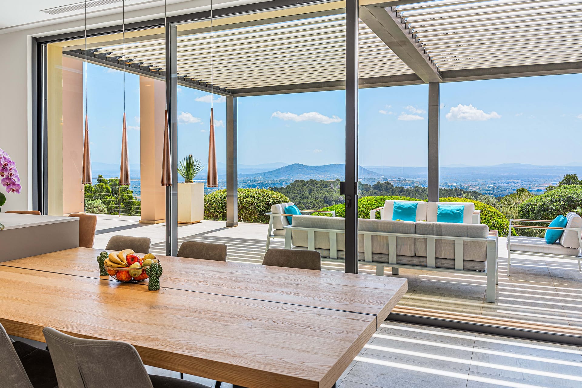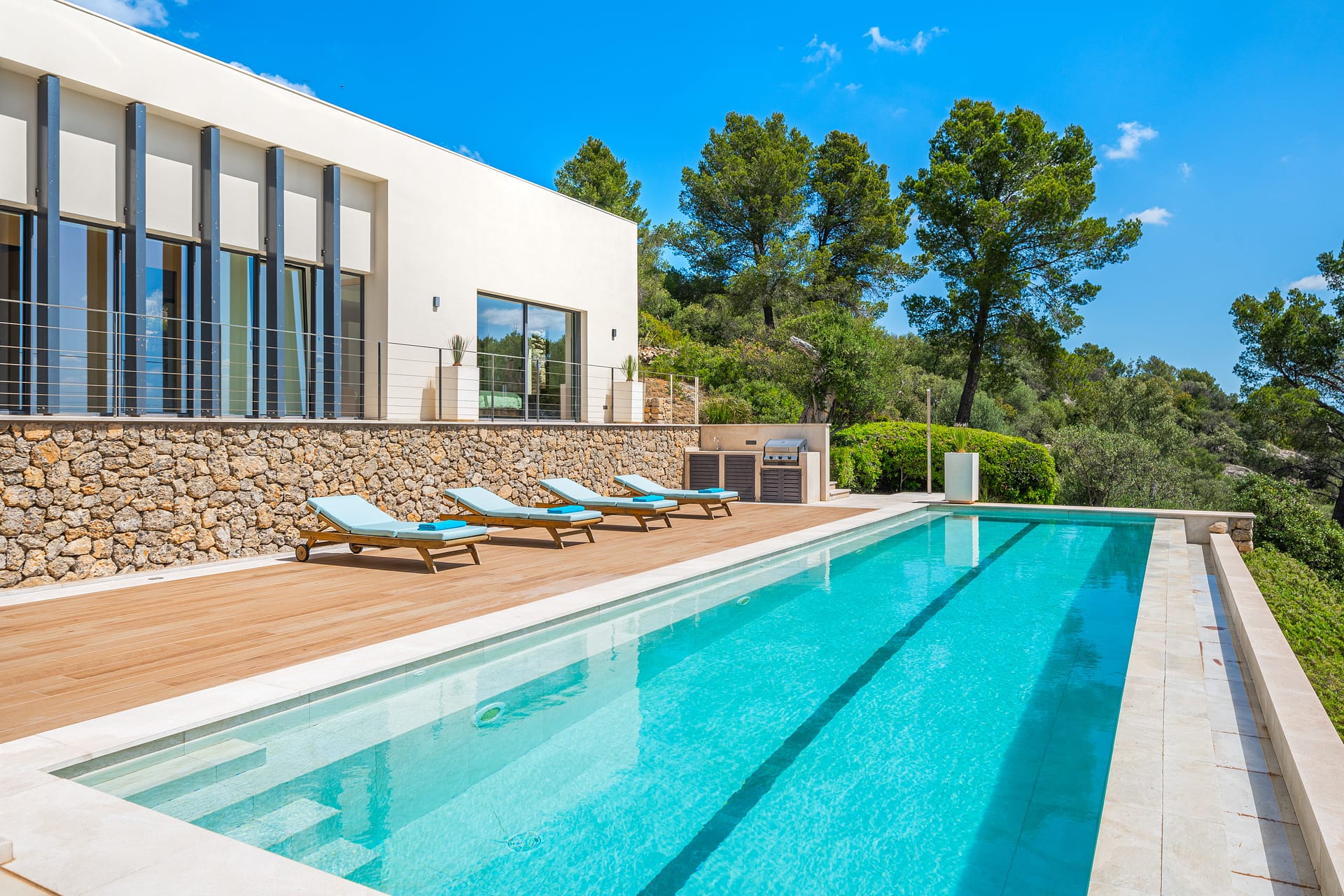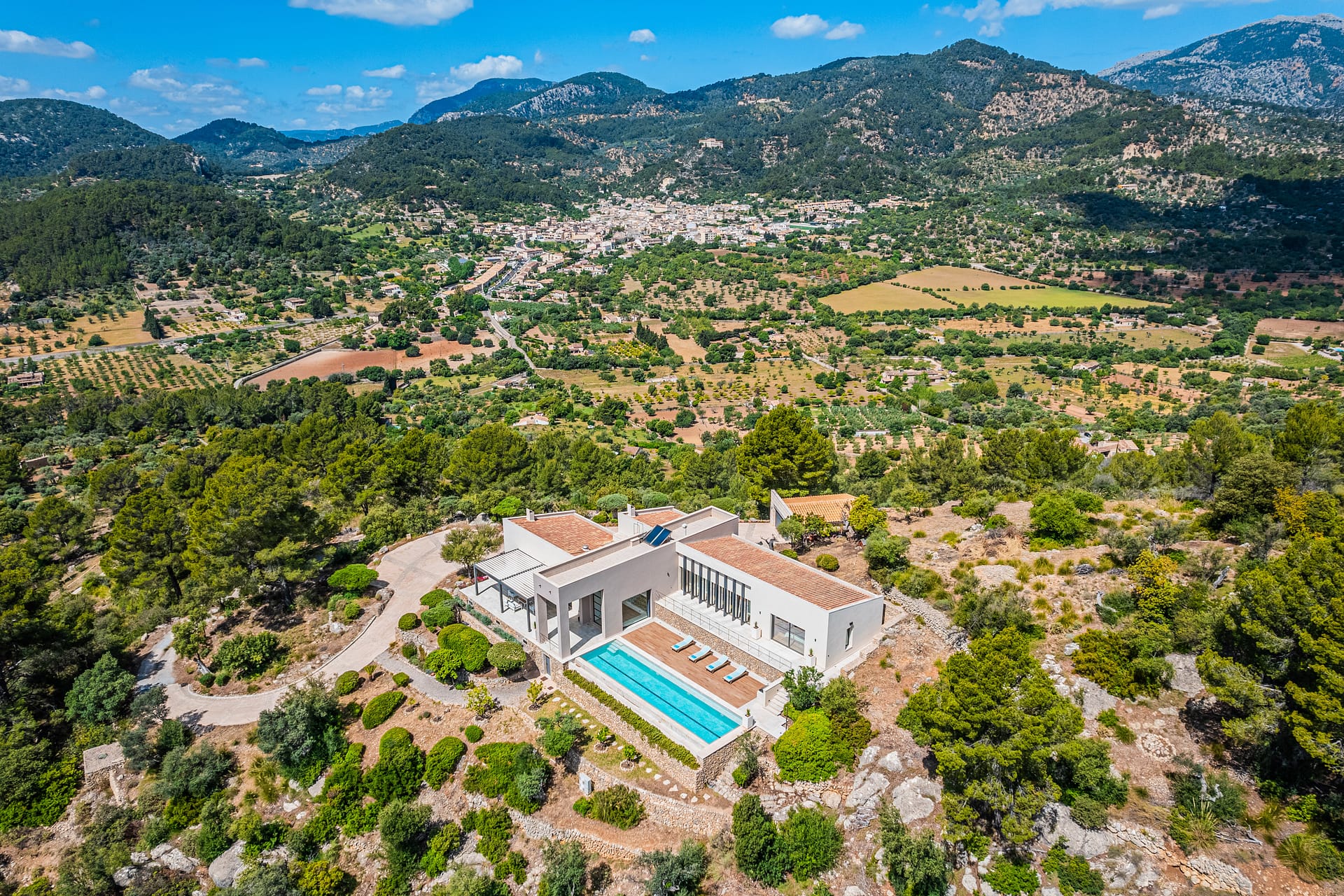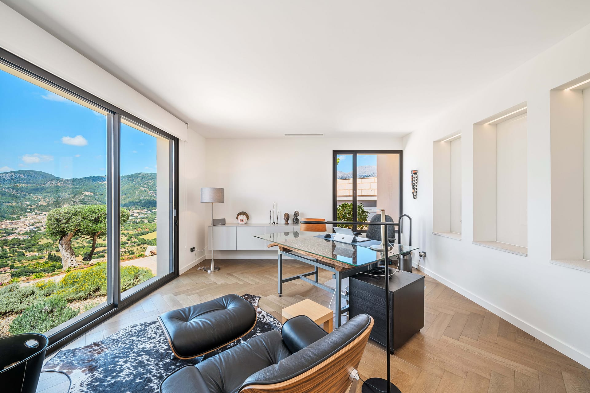 Discover an extraordinary villa nestled in the serene beauty of Selva. This stunning property, boasting 340 square meters of meticulously crafted living space, is set on a sprawling 50,000 square meter plot, offering unparalleled privacy and breathtaking views. The villa features three elegantly designed bedrooms, two luxurious bathrooms, and one en-suite master bedroom, ensuring comfort and sophistication. An additional office room provides the flexibility to create a fourth bedroom with its own en-suite bathroom. Enjoy the modern comforts of underfloor heating throughout the house, ensuring warmth during the cooler months. The property is equipped with hot and cold air conditioning, guaranteeing a perfect indoor climate year-round. This off-grid, independent villa is a testament to sustainable living. Designed to be self-sufficient, it seamlessly blends luxury with eco-friendly practices. Step outside to the large swimming pool and soak in the panoramic mountain and sea views. The pool area is perfect for both relaxation and entertaining guests. A spacious garage provides ample room for your vehicles and additional storage. The villas design emphasizes a strong connection with nature, featuring large glass doors that open to expansive terraces, allowing natural light to flood the interiors and providing stunning views from every room. The interiors are a blend of modern elegance and traditional charm, with high-quality finishes and attention to detail evident throughout. The property is surrounded by beautifully landscaped gardens and natural Mediterranean flora, creating a peaceful and private retreat. This exceptional villa is more than just a home; its a lifestyle. Perfectly suited for those who value privacy, sustainability, and luxury, this property is a rare find in the picturesque region of Selva.
