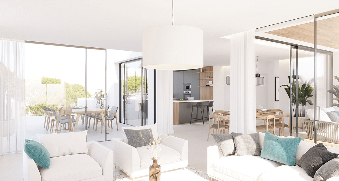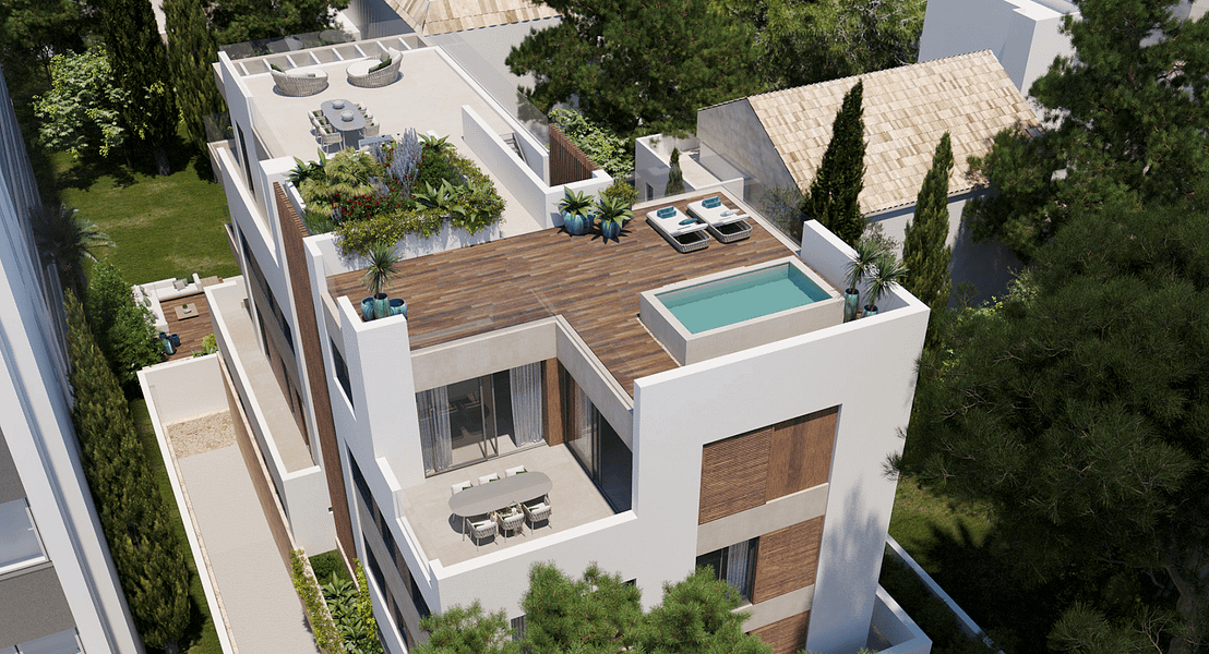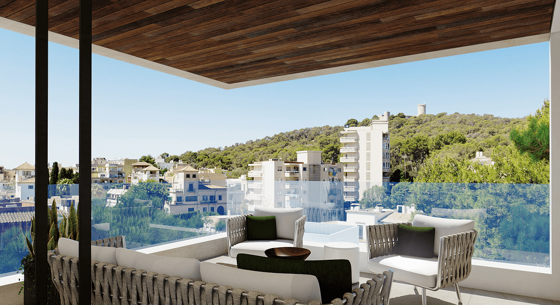 Welcome to Bellver Park Apartments, where you can enjoy the perfect combination of luxury and convenience. Each apartment boasts a well-thought-out layout that leads to exterior south-facing porches and terraces, both covered and uncovered, offering spectacular views of Mallorca’s beautiful landscape. This apartment can be built with two or three bedrooms, depending on one’s needs. With a living space of 86m2 and terraced area of 24m2, this spacious apartment gives you the ultimate comfort. With underfloor heating and air-conditioning throughout the apartment, ensuring your comfort no matter the season. Indirect lighting, stone floors, and top-of-the-line appliances are just a few of the features that enhance the quality of life in the Bellver Oaks apartments. The large floor-to-ceiling windows and doors allow natural light to flood into the apartment, creating a bright and airy atmosphere. You’ll love spending time on your private balcony, enjoying the in-out-living that comes naturally in Mallorca’s perfect climate. At Bellver Park, they believe in elegant sharing spaces that promote community and relaxation. The gardens and pool area are the perfect example of this, providing ample space for residents to relax and unwind. Living in Palma means embracing a relaxed cosmopolitan lifestyle as Bellver Park is perfectly situated near to all amenities to provide you with everything you need. A short stroll away, you will find a range of shops, stores, and restaurants. Take a morning walk along the beach boulevard, have lunch at the yacht club, or spend quality time with friends at one of Palma’s numerous restaurants in the old town.