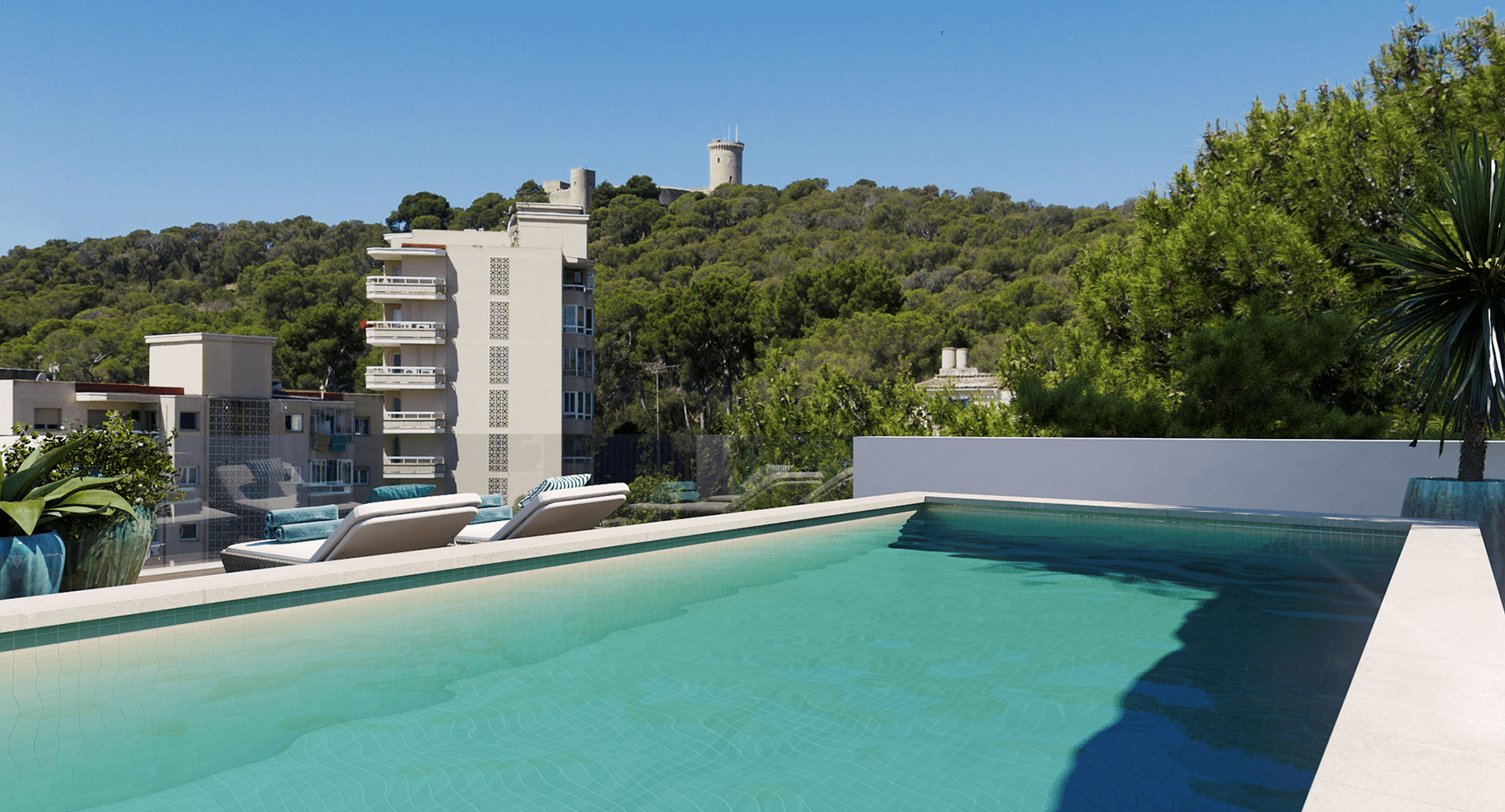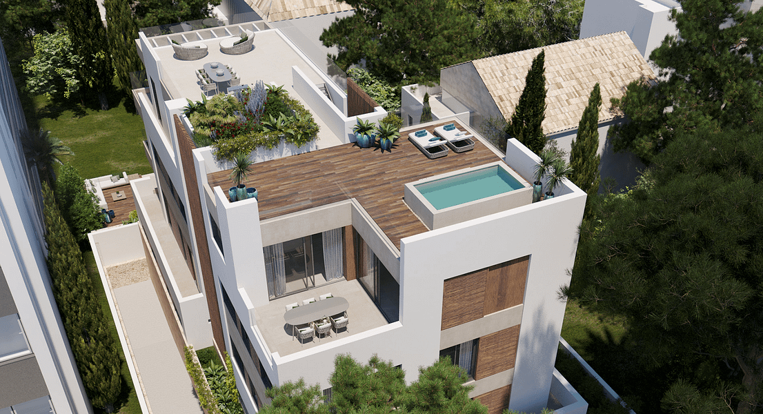 Welcome to Bellver Park Apartments, where you can enjoy the perfect combination of luxury and convenience. Each apartment boasts a well-thought-out layout that leads to exterior south-facing porches and terraces, both covered and uncovered, offering spectacular views of Mallorca’s beautiful landscape. This apartment can be built with two or three bedrooms, depending on one’s needs. With a living space of 86m2 and terraced area of 35m2, this spacious apartment gives you the ultimate comfort. With underfloor heating and air-conditioning throughout the apartment, ensuring your comfort no matter the season. Indirect lighting, stone floors, and top-of-the-line appliances are just a few of the features that enhance the quality of life in the Bellver Oaks apartments. The large floor-to-ceiling windows and doors allow natural light to flood into the apartment, creating a bright and airy atmosphere. You’ll love spending time on your private balcony, enjoying the in-out-living that comes naturally in Mallorca’s perfect climate. At Bellver Park, they believe in elegant sharing spaces that promote community and relaxation. The gardens and pool area are the perfect example of this, providing ample space for residents to relax and unwind. Living in Palma means embracing a relaxed cosmopolitan lifestyle as Bellver Park is perfectly situated near to all amenities to provide you with everything you need. A short stroll away, you will find a range of shops, stores, and restaurants. Take a morning walk along the beach boulevard, have lunch at the yacht club, or spend quality time with friends at one of Palma’s numerous restaurants in the old town.