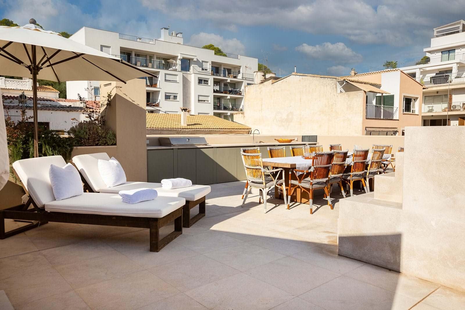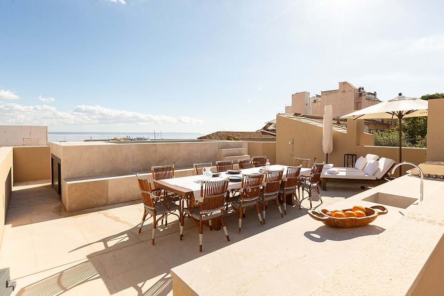 At the heart of the home is a chef’s kitchen, where sleek finishes meet functionality. Here, cooking becomes a pleasure, while dining and entertaining flow effortlessly. Moreover, its thoughtful layout enhances both everyday living and special gatherings. >The highlight of this property is the rooftop terrace, boasting a second private pool and panoramic views of Palma, the sea, and the surrounding hills an idyllic setting for morning coffee or sunset cocktails.