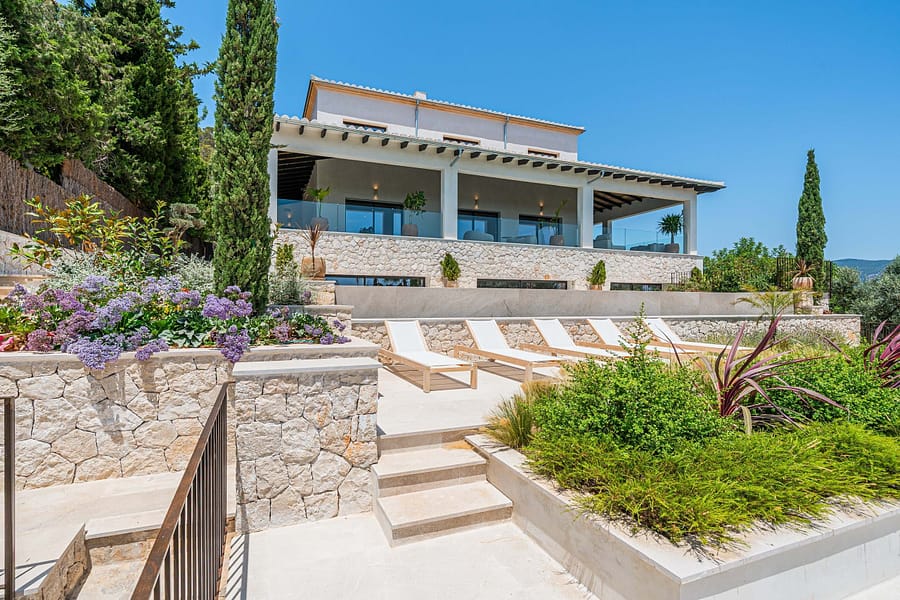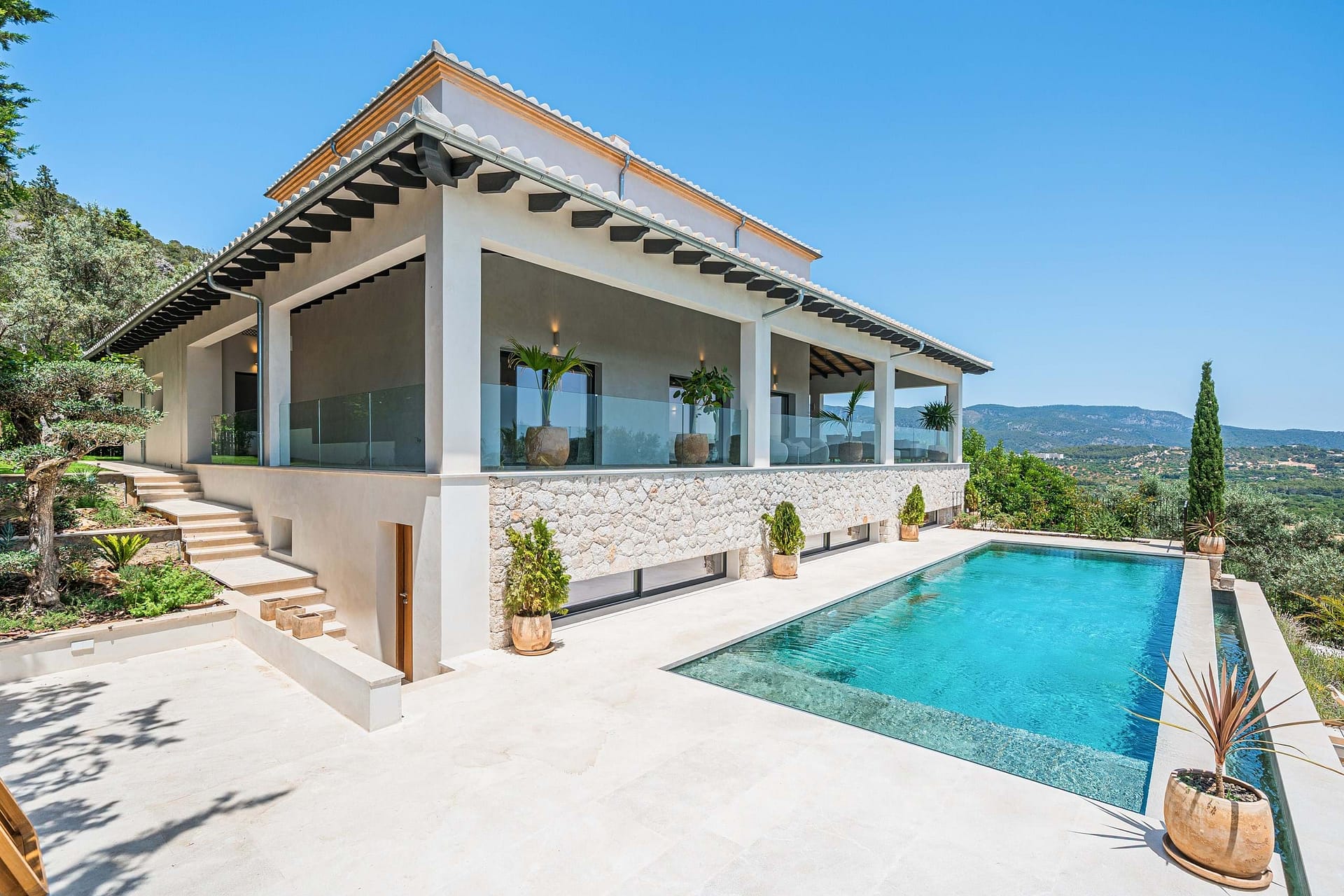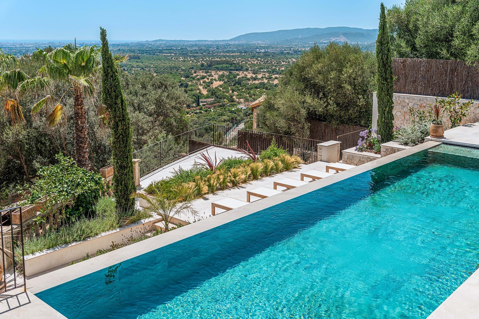 Perched in a prime elevated setting, this exclusive villa enjoys spectacular views of the Tramuntana mountains and the Bay of Palmavisible from nearly every room. The architecture and interior design combine elegant styling with high functionality, crafted with carefully selected materials and cutting-edge home technology.