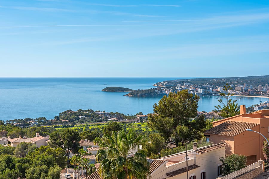 Discover your dream home in the prestigious Costa den Blanes neighborhood, nestled in the heart of Mallorca’s coveted southwest coast. This exquisite modern abode is perched on a generous 840m plot, facing south to bask in endless sunshine, which is a testament to its impeccable placement. The house spans approximately 380m and features four sumptuous bedrooms, each with its own private and opulent en-suite bathroom, making it a sanctuary of luxury and space. The residence is spread over three meticulously designed levels. The upper floor serves as the heart of the home and houses a cozy living-dining area, a state-of-the-art kitchen, the grand master suite with its en-suite haven, and a guest toilet for convenience. On the ground floor, you’ll find three additional serene bedrooms, each a private retreat with its own en-suite bathroom, crafted for the utmost privacy and comfort of its inhabitants. The lower level is dedicated to your well-being and relaxation, featuring a sauna, a fitness area for your health regime, an additional bathroom, and a utility room, combining comfort with practicality. Step outside to embrace breathtaking sea views from the terraces, both open and sheltered, providing the perfect backdrop for any occasion. Dive into the luxurious saltwater pool, equipped with a counter-current system for an enhanced swimming experience. The home is adorned with underfloor heating, air conditioning, and elegant oak parquet flooring throughout, ensuring year-round comfort. Aluminum windows with double glazing offer both insulation and efficiency. Security is paramount, with an alarm system, while the convenience of an elevator ensures effortless movement across floors. Electric awnings provide shade at the touch of a button, and a double garage secures your vehicles. Situated in the serene and secure Costa den Blanes, with 24-hour security, this haven is just a stone’s throw from the upscale Puerto Portals marina. Here, a world of fine dining, chic boutiques, and endless leisure awaits. With close proximity to Palma and its international airport, sandy beaches, prestigious international schools, and a plethora of golf and tennis facilities, everything you desire is within reach.