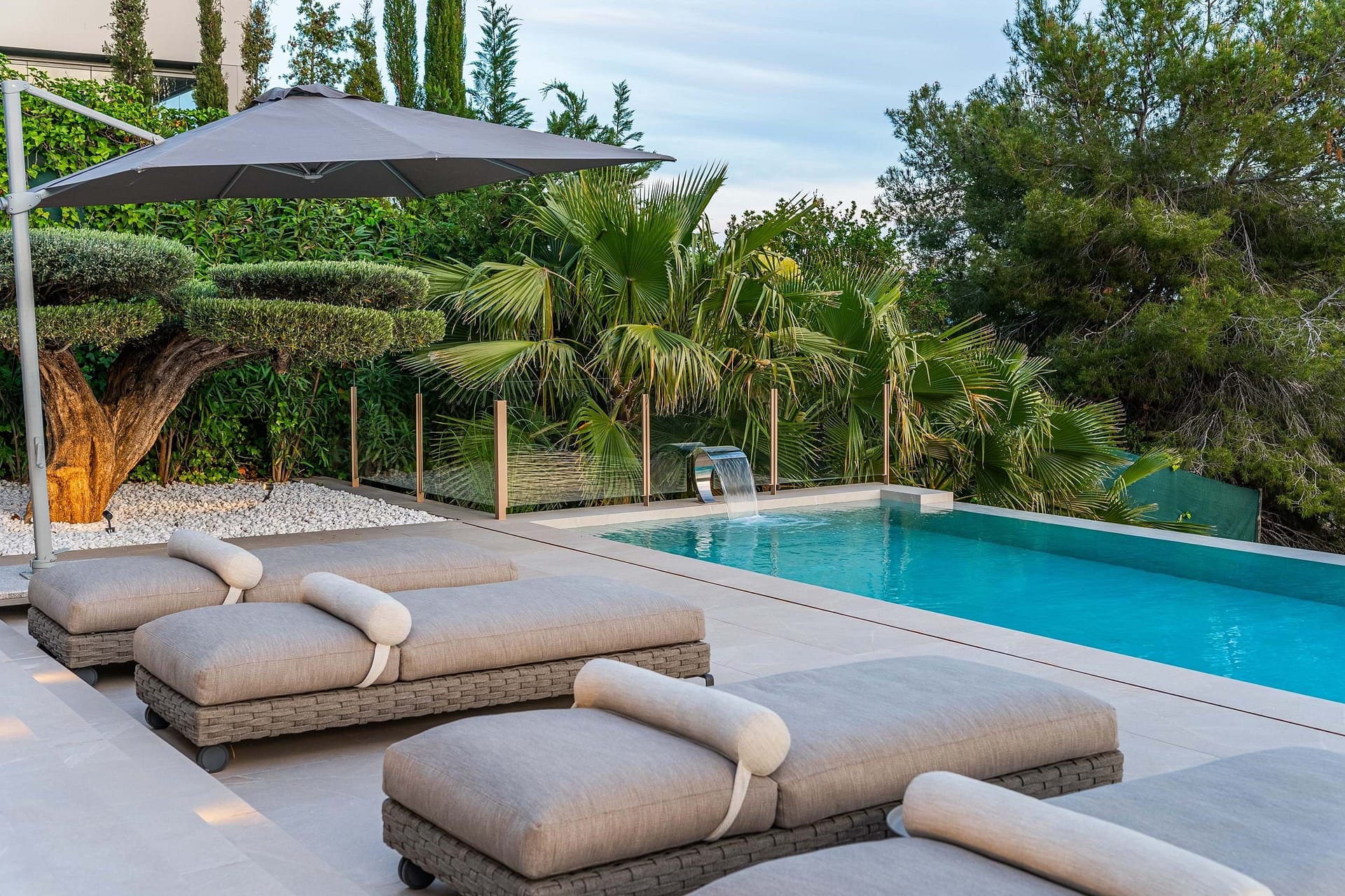 Particularly noteworthy is the separate guest apartment below the pool. With its own entrance, bathroom, bathroom, and private terrace, it offers visitors an independent and comfortable retreat. This villa delivers on every level—clean architecture, smart design, and endless outdoor space.