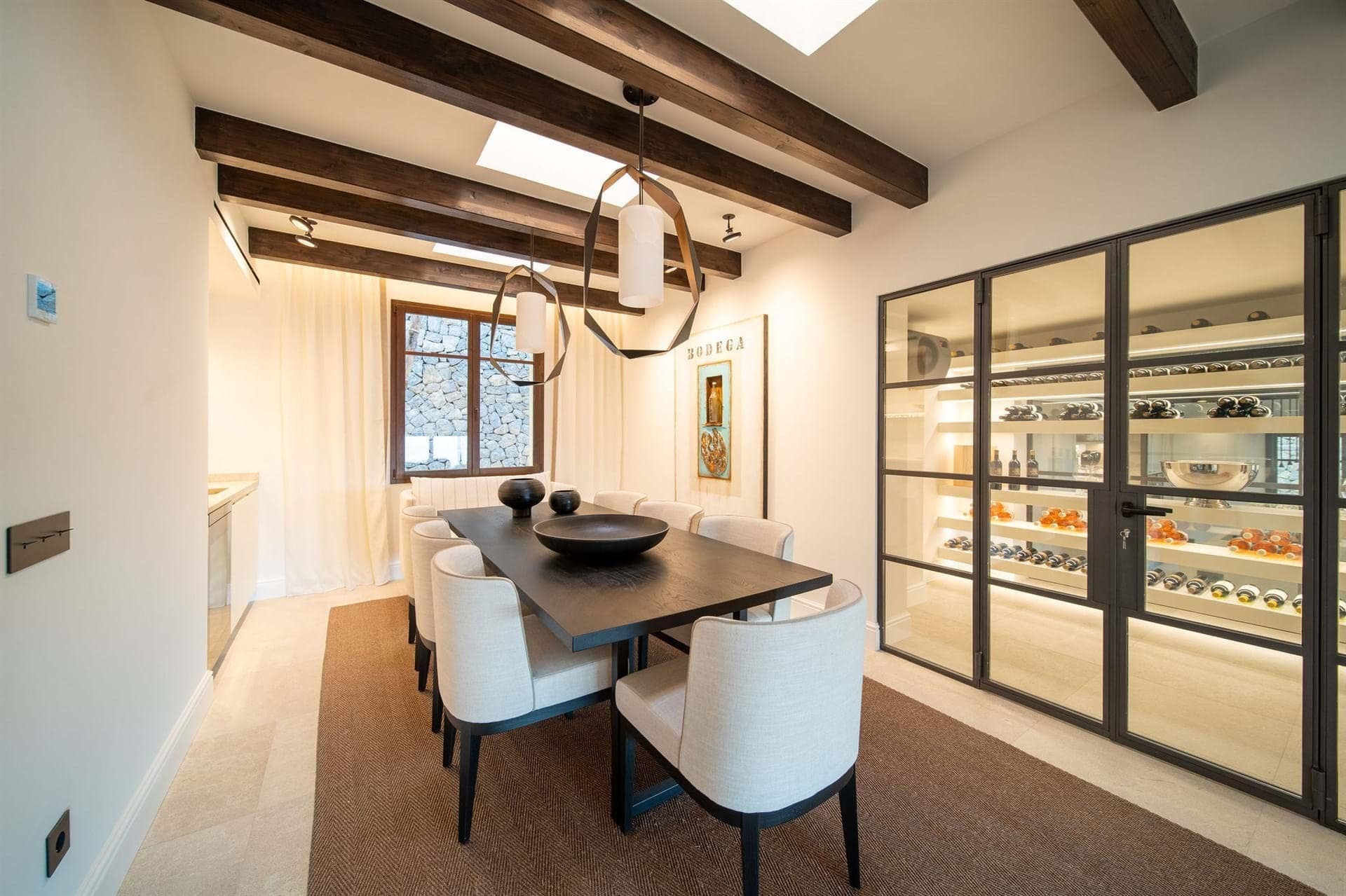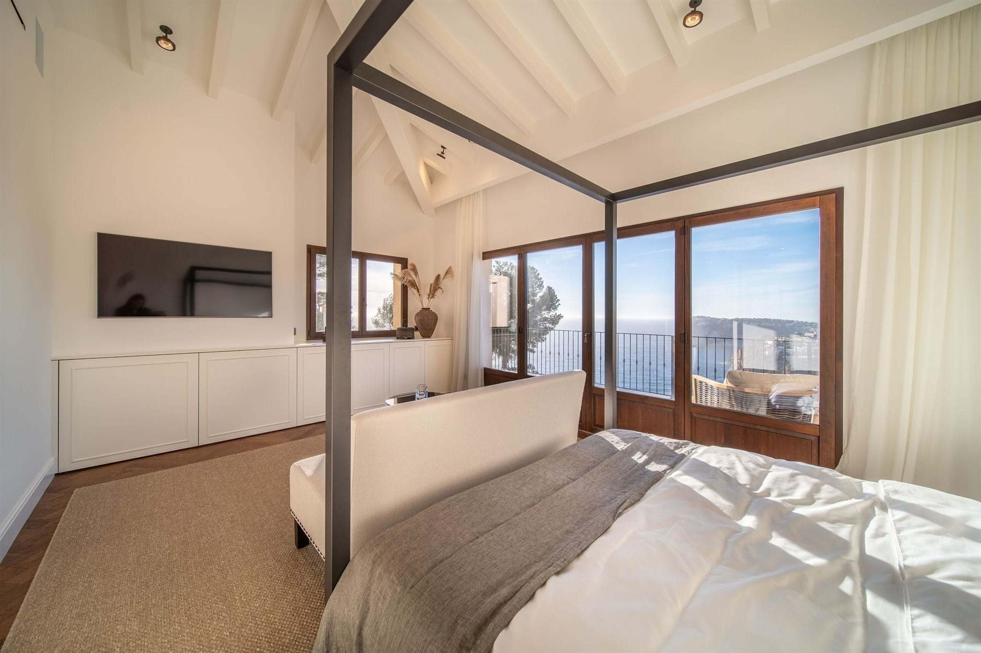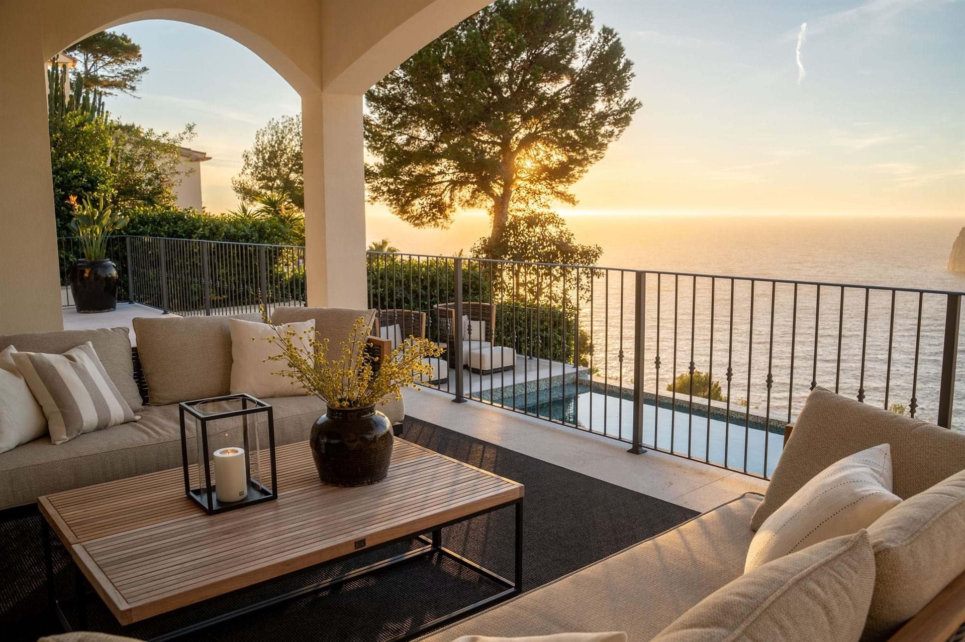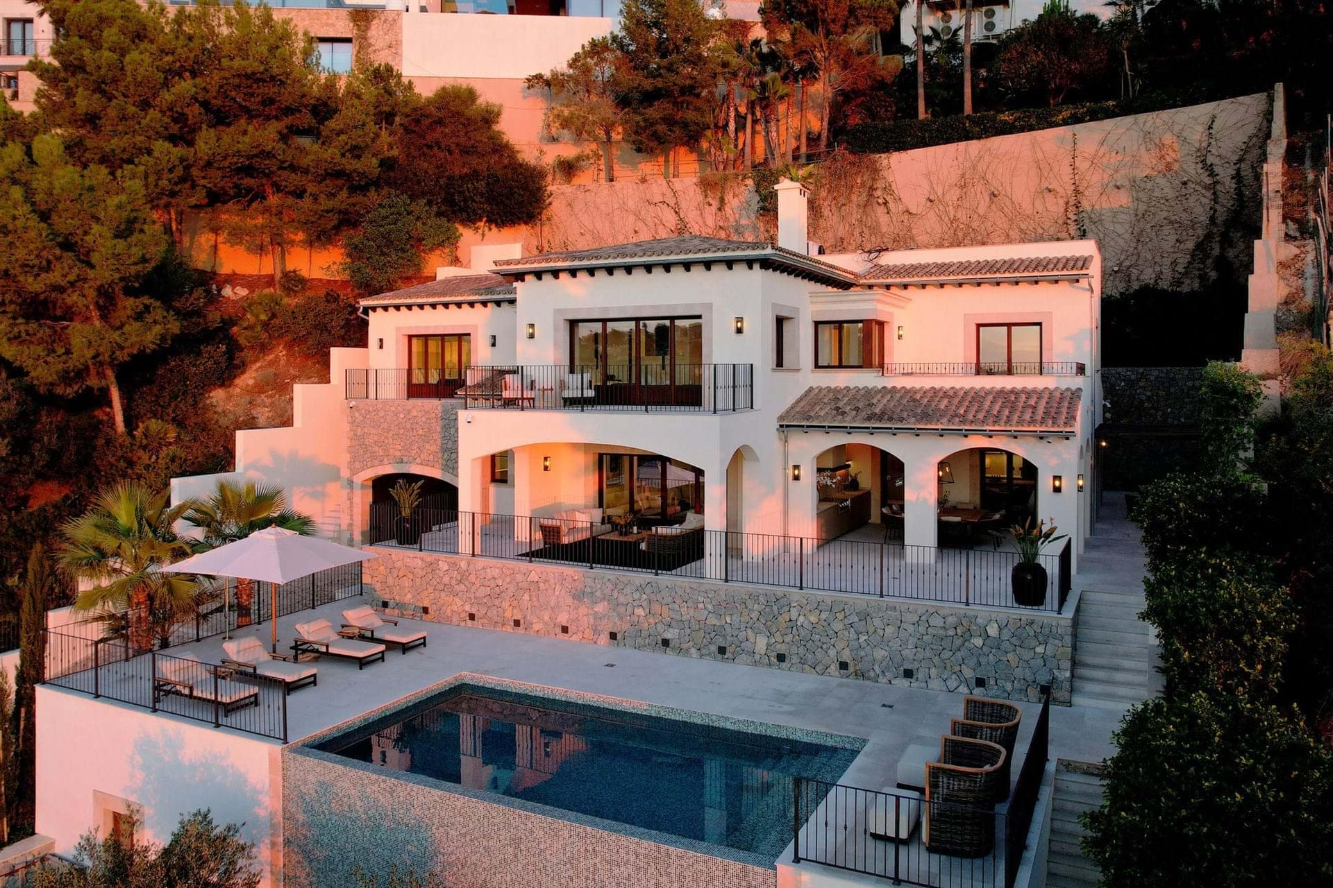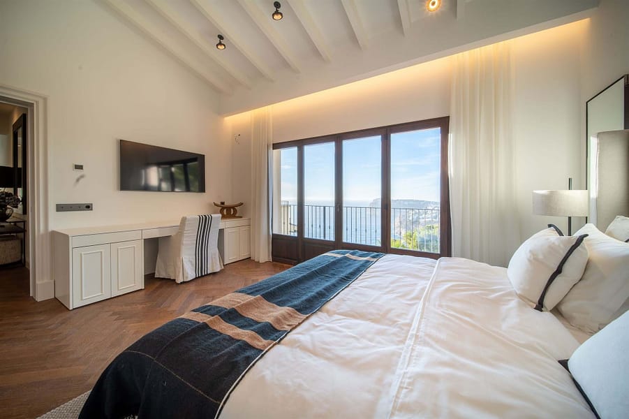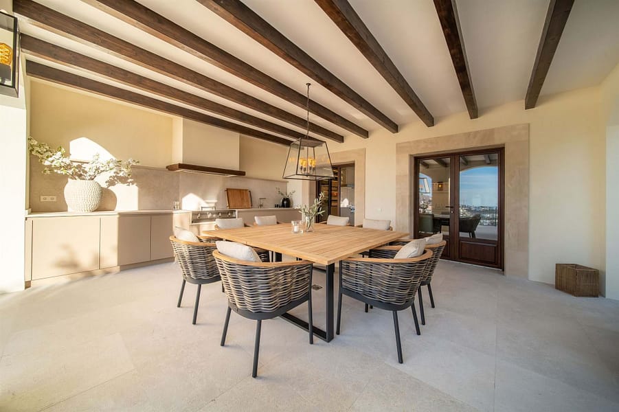 Situated in the exclusive enclave of Puerto Andratx, this villa enjoys a serene. And calm setting, away from the hustle and bustle of everyday life. Here, time moves at a slower pace, and each moment is an opportunity to savor the beauty that surrounds you. However within minutes you’ll reach the trendy fishermans port of Puerto Andratx with a fantastic summer atmosphere. Whether you’re lounging by the pristine pool, dining al fresco on the terrace. Or simply gazing at the endless expanse of the Mediterranean, every inch of this villa is designs to elevate your lifestyle.