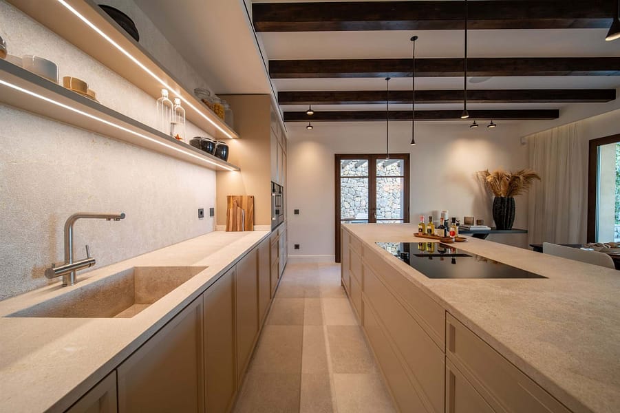 Every aspect of this villa has been meticulously designs and meticulously renovates to the highest standards of craftsmanship, ensuring a home that radiates opulence and charm. The heart of this villa is its open living spaces, where an abundance of natural light floods in. The seamless blend of indoor and outdoor living creates an atmosphere of tranquility and serenity, offering a harmonious connection with the Mediterranean landscape.
