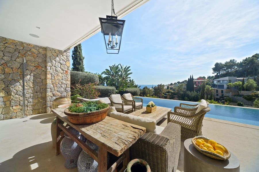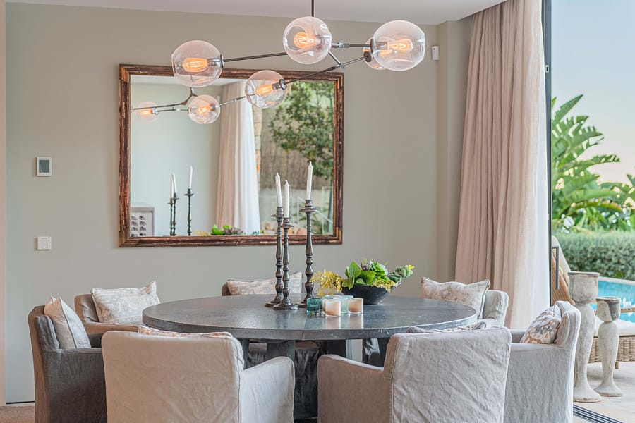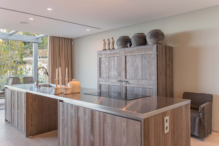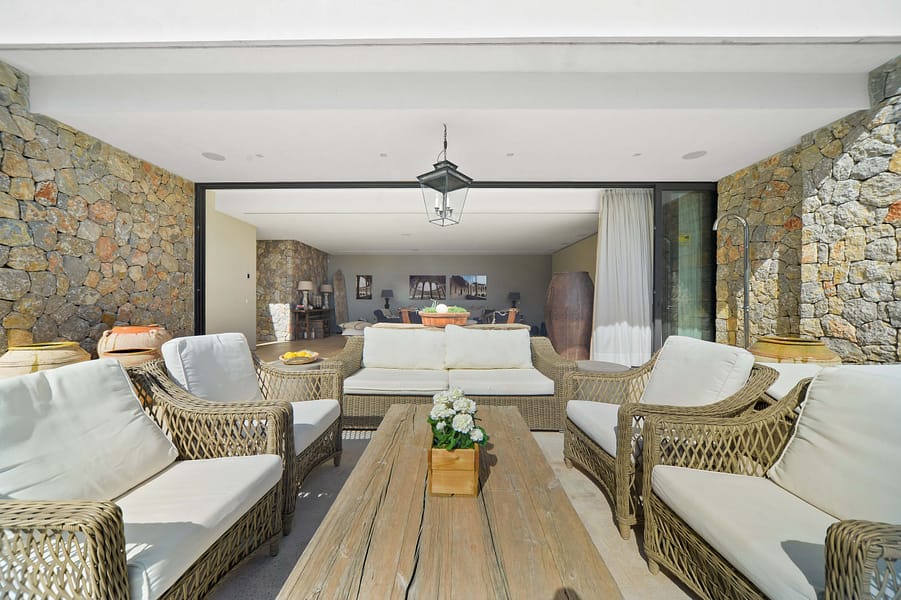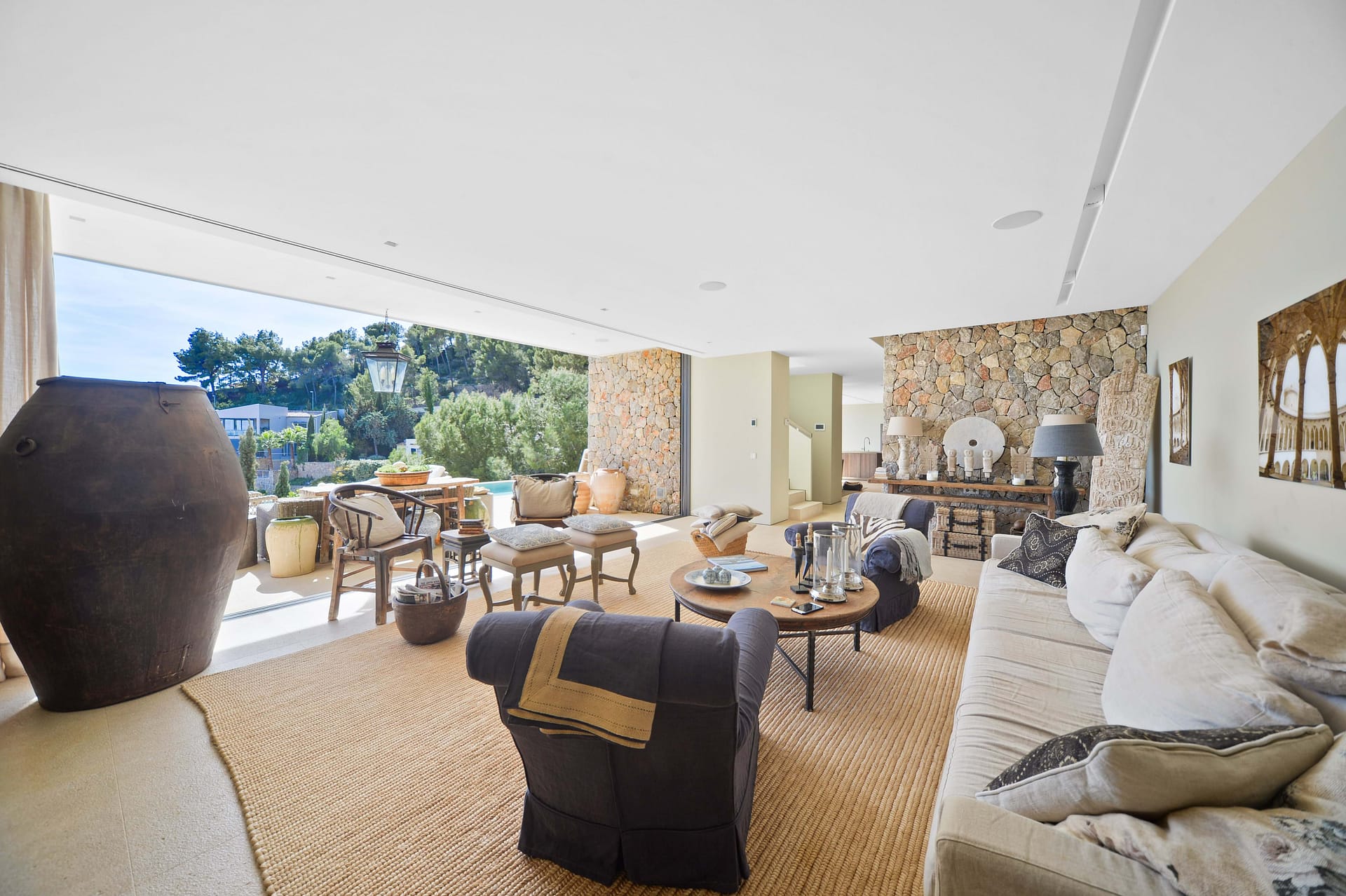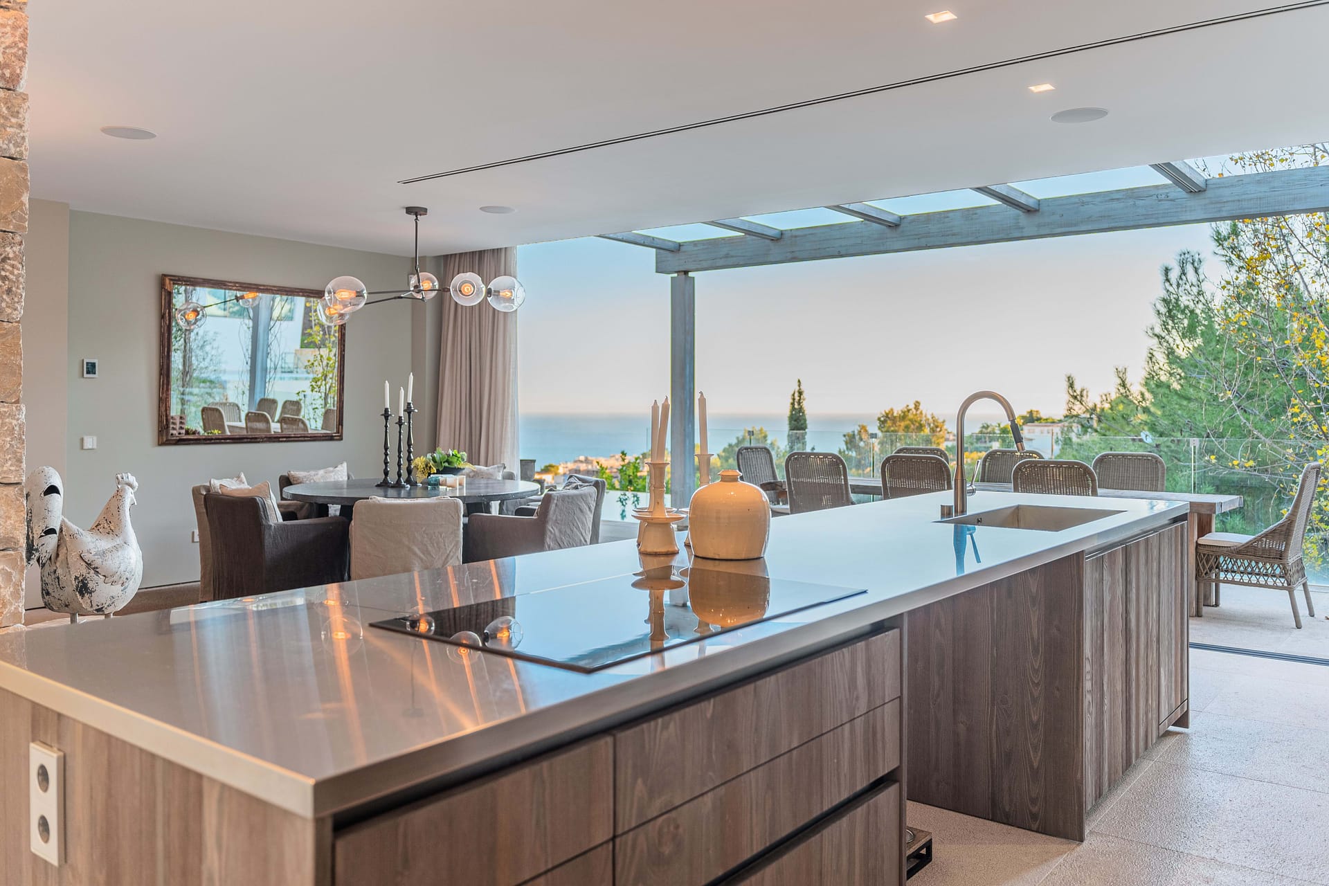 Set in the exclusive residential neighbourhood of Genova, one of Palma’s most sought after neighbourhoods by foreign investors, residents or foreigners looking to relocate and require a central location, in the capital city, for all year round living, close to amenities and infrastructures. This villa offers panoramic sea views over the Bay of Palma, a modern architecture, with a Mediterranean touch and Scandinavian influences, it’s light flooded, warm, cosy and elegant, with two entrances: the main entrance on the roof-terrace, where you’ll find a carport, whereas the second entrance is at the bottom of the property, where you’ll find a garage and a staircase through the garden that leads to the pool terrace and the entrance to the living area. The villa is distributed on 3 levels, on the first floor you’ll find 4 bedrooms: the spacious master bedroom with a bathroom ensuite, 2 guest bedrooms that share a bathroom and a fourth bedroom with bathroom ensuite, on the ground floor you’ll find a spacious living room and an open plan, designer kitchen, a laundry room and a dining area next to the kitchen and outside on the spacious terrace. The pool area is also stunning, overlooking the bay of Palma and the historical village of Genova, where beautiful modern villas coexist with the old Majorcan, charming houses and Spanish architecture. below the pool area you’ll also find a guest or staff apartment and a tidy, manicured sub-tropical garden. Genova is also well known for its traditional Majorcan meat restaurants: Casa Jacinto, Lume & Co, Meson La Rueda, Can Pedro, to name but a few. Also, you can access hiking paths, ideal for dog walking and foraging for seasonal asparagus and mushrooms. This property is perfect for sun lovers and the various terraces offer the best place for sundowners in the evening watching the sunset. Additional features include: a garage, underfloor heating, wooden floors, natural stone countertops and air conditioning.