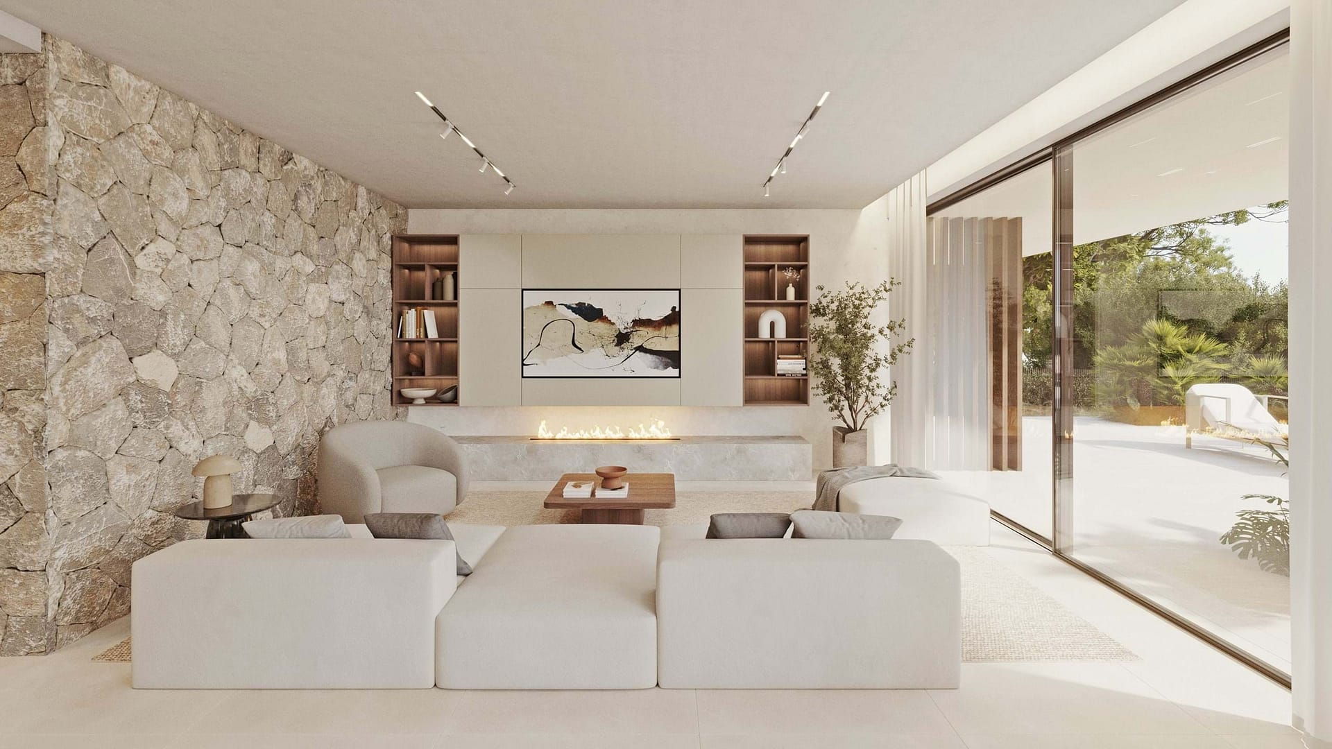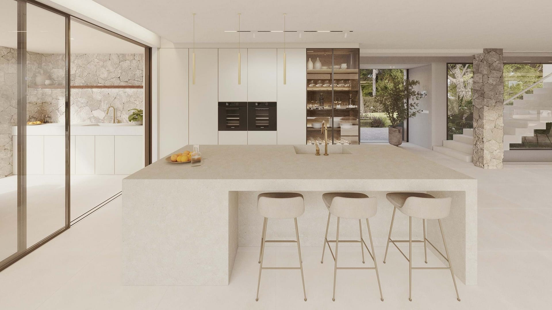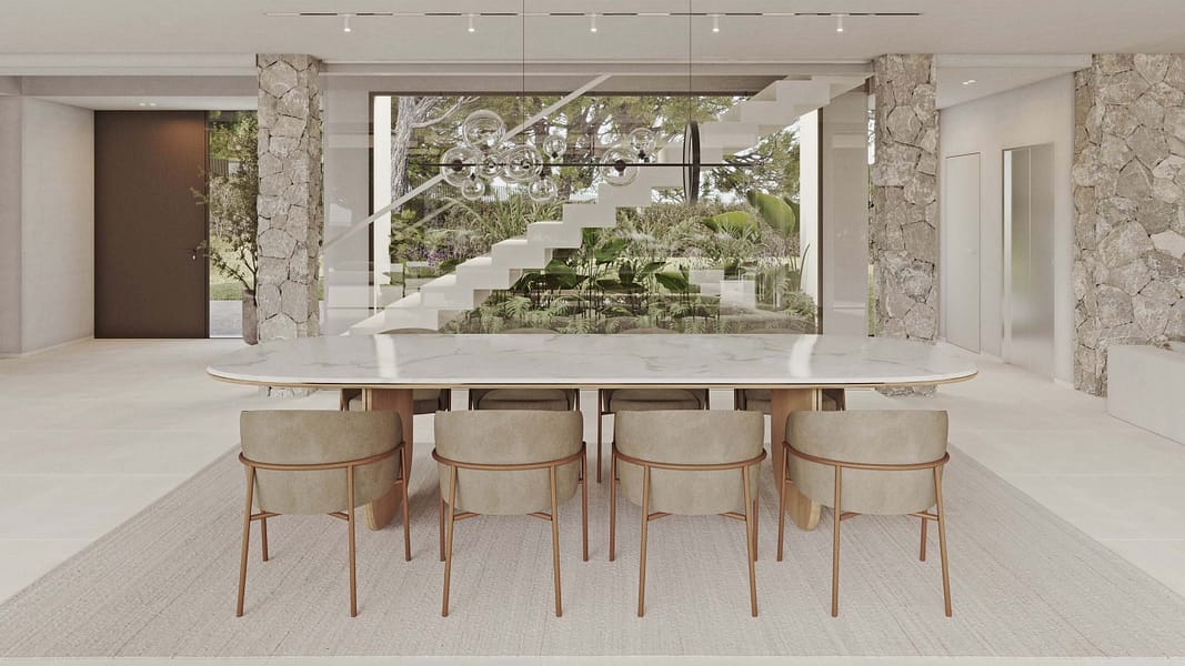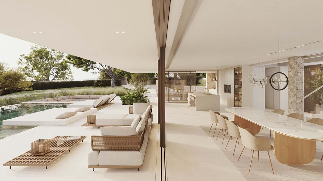 Despite its quiet and natural location, the villa development is extremely well connected. The charming village of Bunyola with its cafés, restaurants, and shopping facilities is only a few minutes away, as are several international schools. The island’s capital, Palma, with its historic old town, marina, and diverse cultural offerings, is a short drive away, as is the international airport.