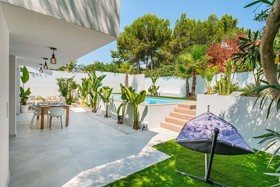 Set along Mallorcas southwest coast, Palmanova is loved for its sandy beaches, relaxed seaside atmosphere, and easy access to restaurants, marinas, and Palma. This villa is a true showcase of modern style and relaxed Mediterranean living.