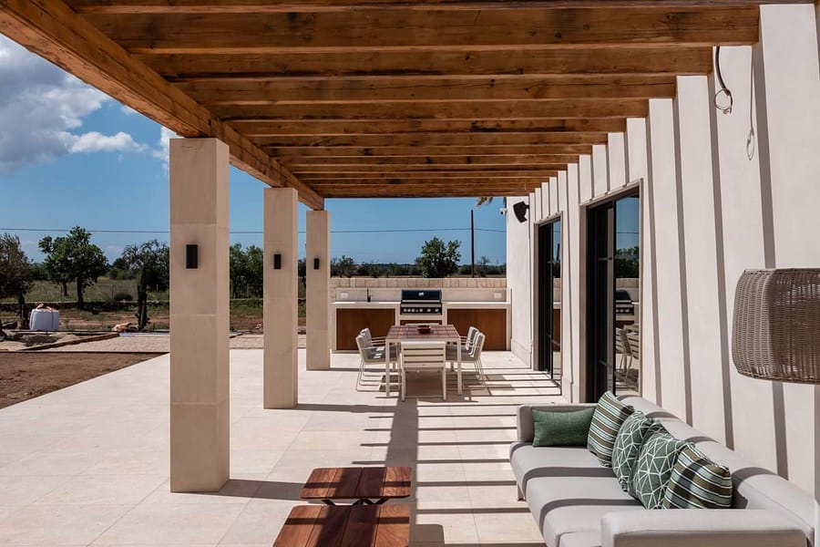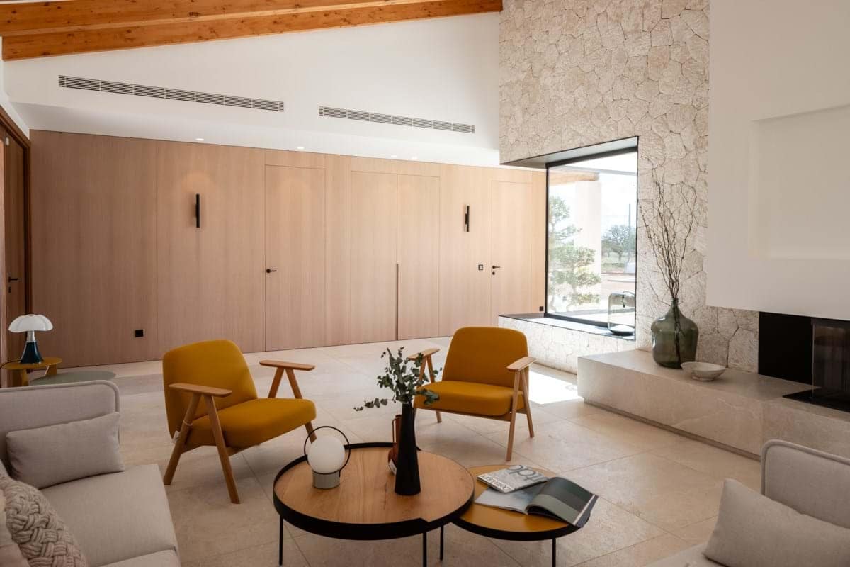 Set amidst the serene backdrop of approximately 31,450 square meters of lush terrain, this exquisite villa stands as a testament to refined living within reach of Campos. Its architectural finesse blends seamlessly with the natural surroundings, marrying elegant lines with the rustic charm of wood and stone. Spread across a single level, the villa’s allure unfolds as you step into a grand foyer, guiding you towards the expansive living quarters on the right. Here, an airy living space awaits, adorned with a fireplace that exudes warmth, complemented by a state-of-the-art kitchen offering modern conveniences. Beyond lies access to an inviting terrace, seamlessly extending the living space outdoors. On the opposite wing lies the lavish master suite, boasting an indulgent ensuite bathroom and a spacious dressing area. Two additional bedrooms, each with their own ensuite bathrooms, offer comfort and privacy, while a guest toilet adds convenience for residents and visitors alike. Outside, the Mediterranean-inspired garden invites leisurely strolls and alfresco gatherings, boasting a covered terrace complete with a well-appointed outdoor kitchen and a cozy seating enclave. A generously sized swimming pool beckons for refreshing dips on warm days, enveloped in tranquility. Year-round comfort is ensured with underfloor heating and air conditioning, maintaining an optimal climate within the villa. A garage provides shelter for two vehicles, while additional luxuries such as integrated Bowers & Wilkins speakers in the living room and terrace elevate the ambiance. Embracing sustainability, plans are underway for the installation of a photovoltaic system alongside the public electricity connection, aligning with the villa’s commitment to eco-conscious living.