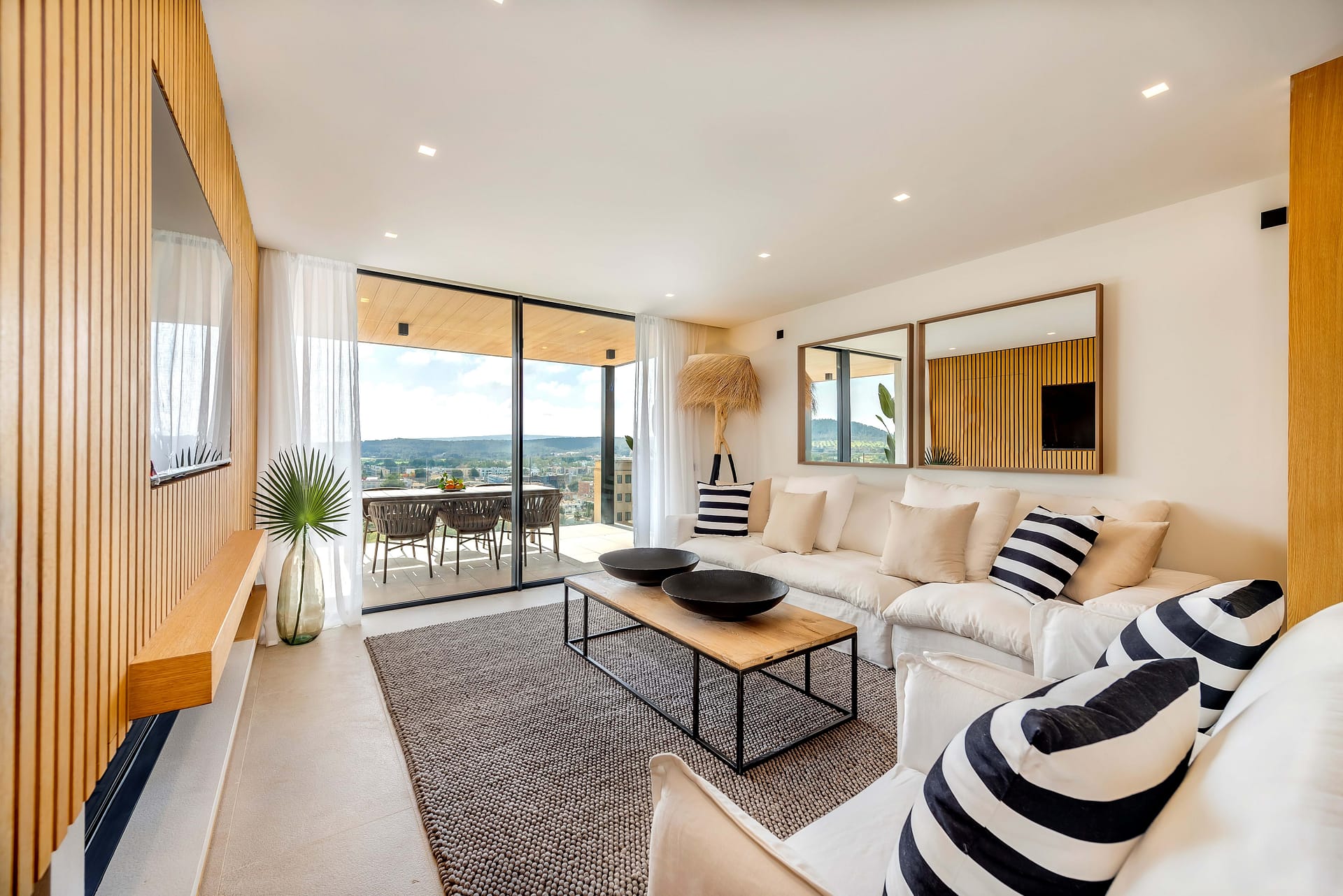 This modern residential complex with great views of the mountains, the golf course and with lateral sea views is located in the sought-after residential area of Santa Ponsa and only 1km from the beautiful beach. Here 24 luxury apartments will be built with high quality materials and are expected to be completed in 2023. Generously cut, light-flooded apartments with clean lines and modern design will be created. The top floor apartments have 4 bedrooms and 3 bathrooms, 2 of them en suite. The open living and dining area with integrated and ultra-modern kitchen incl. Miele electrical appliances and wine fridge offer enough space for friends and family. The apartments captivate with their design: bright white and light beige and natural tones give all rooms stylish coziness and at the same time a very chic ambience. Other features of the apartment include community pool, domotics, underfloor heating and an underground parking space.
