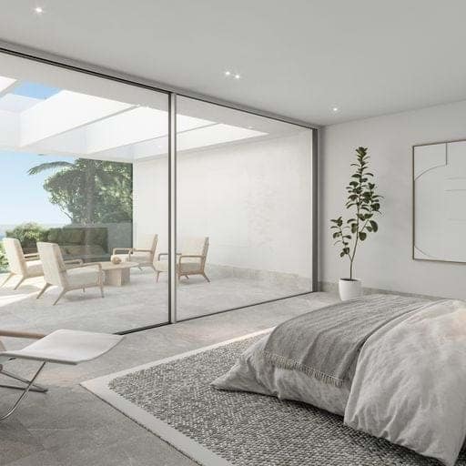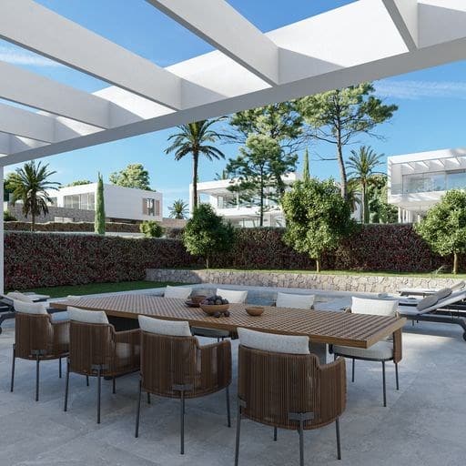 This upscale, luxurious villa is part of a new construction project named “Plein Soleil” located in the desirable residential area of Sol de Mallorca in the southwest of Mallorca. Five detached luxury villas are currently under construction, featuring a combination of modern architecture, high-quality natural materials, and the finest furnishings. The surrounding area is characterized by numerous white sand and crystal water bays, pine forests, and green zones. The villa boasts large, open, and bright interiors with high ceilings, particularly in the spacious living and dining area, which includes an open kitchen area and four wide window fronts that face the garden. This allows for seamless integration between the interior and exterior. The villa comprises a total of five bedrooms and five en-suite bathrooms, a loft, and a panoramic terrace on the first floor that can accommodate a Hot tub and/or summer kitchen. Additionally, there are multiple terraces and lawns for sunbathing around the pool. The villa comes fully equipped with air conditioning w/c, underfloor heating, a carport for two cars, Villeroy & Boch sanitary facilities, Dornbracht fittings, a Gunni&Trentino designer kitchen, Gaggenau kitchen appliances, and an alarm system. The property is situated in a tranquil location, a short drive away from restaurants, supermarkets, international schools, beaches, golf courses, and medical centers. The villa is an ideal year-round residence or vacation home, and the marinas of Puerto Portals and Port Adriano and the island’s capital, Palma, are all within a 10-20 minute drive. Completion is scheduled for 2024.