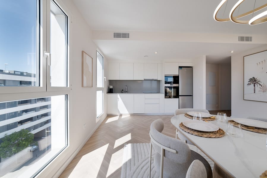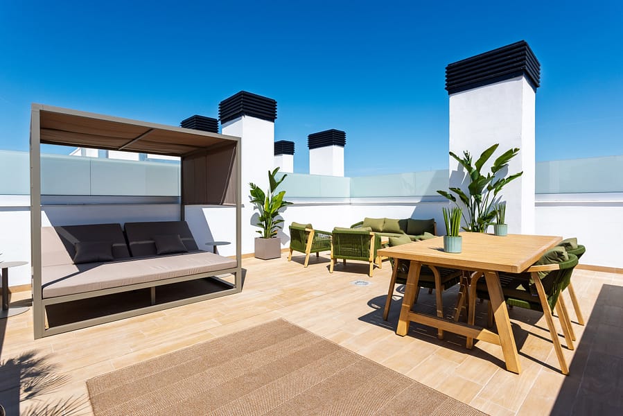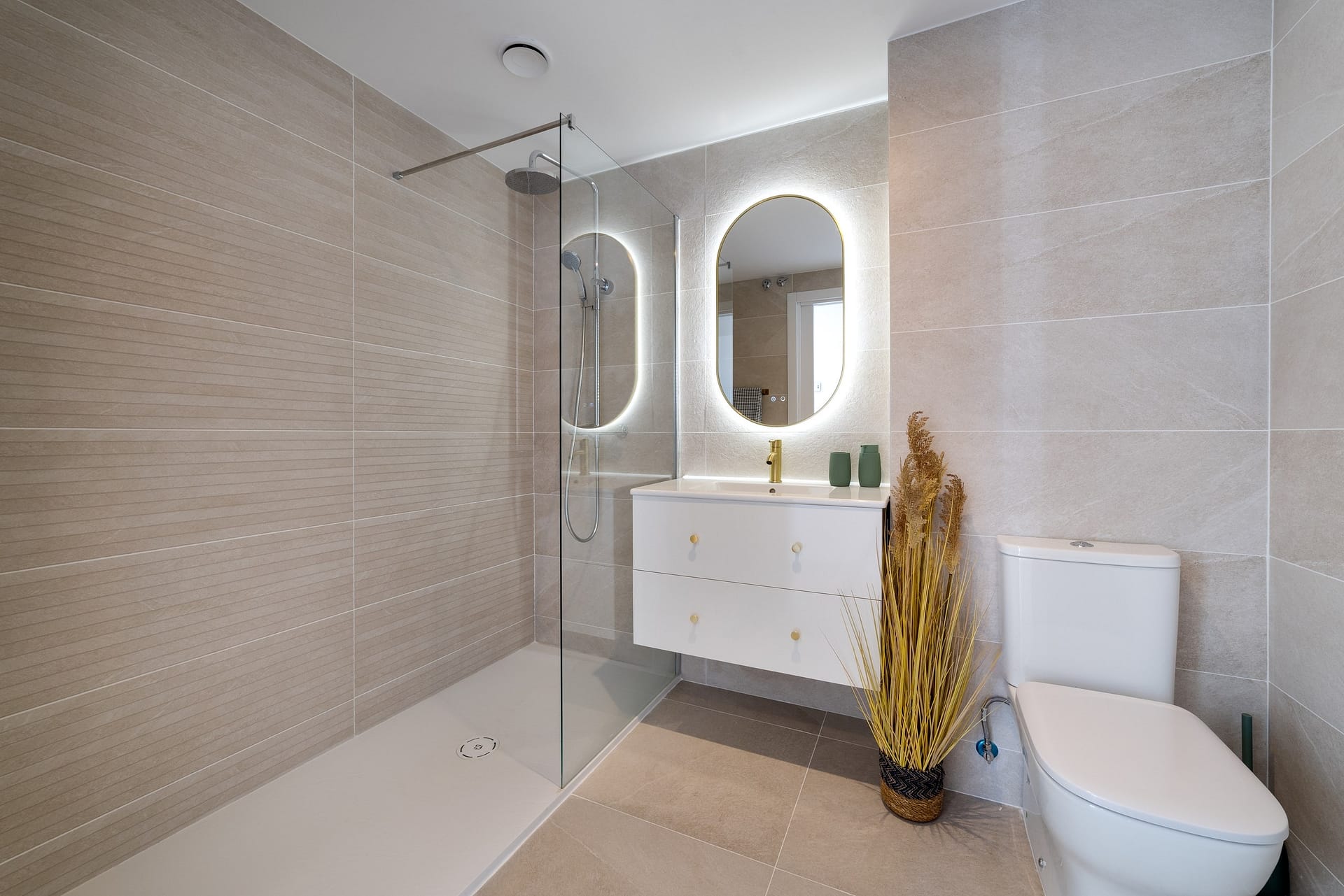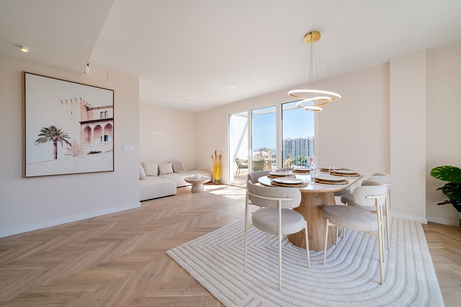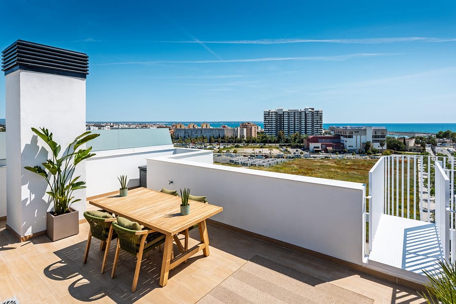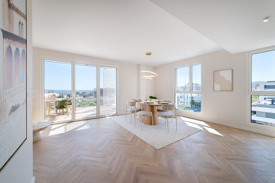 A standout feature of this newly built apartment for sale in Palma is the expansive private roof terrace. From here, you can enjoy panoramic sea views as well as sweeping vistas towards the iconic Bellver Castle the perfect setting for outdoor dining, entertaining or simply relaxing in the Mallorcan sun.