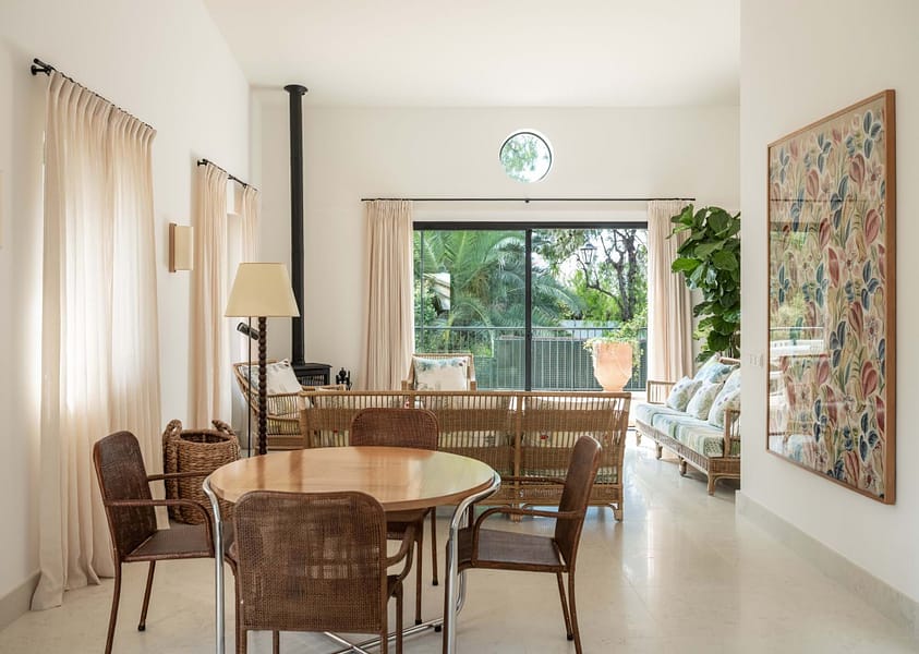 Designed for year-round comfort, the villa offers central heating, underfloor heating, and central air conditioning. The south-facing orientation ensures abundant natural light throughout the home, enhancing its warm and inviting atmosphere. The interiors showcase high-quality finishes, including stylish tile and wooden flooring, and the property is offered fully furnished.