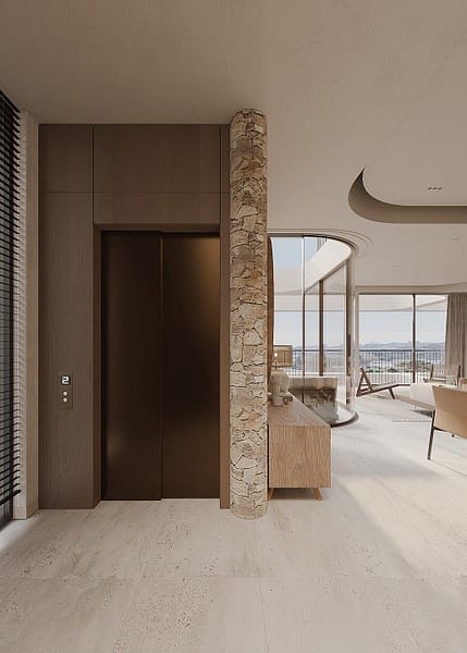 Premium features include custom-built designer kitchen, built-in appliances, floor-to-ceiling wooden doors, minimalist sliding doors, underfloor heating, a gas fireplace, and air conditioning. Private elevator and stair access leads directly from the underground garage, where two parking spaces and a storage room complete this exceptional home.