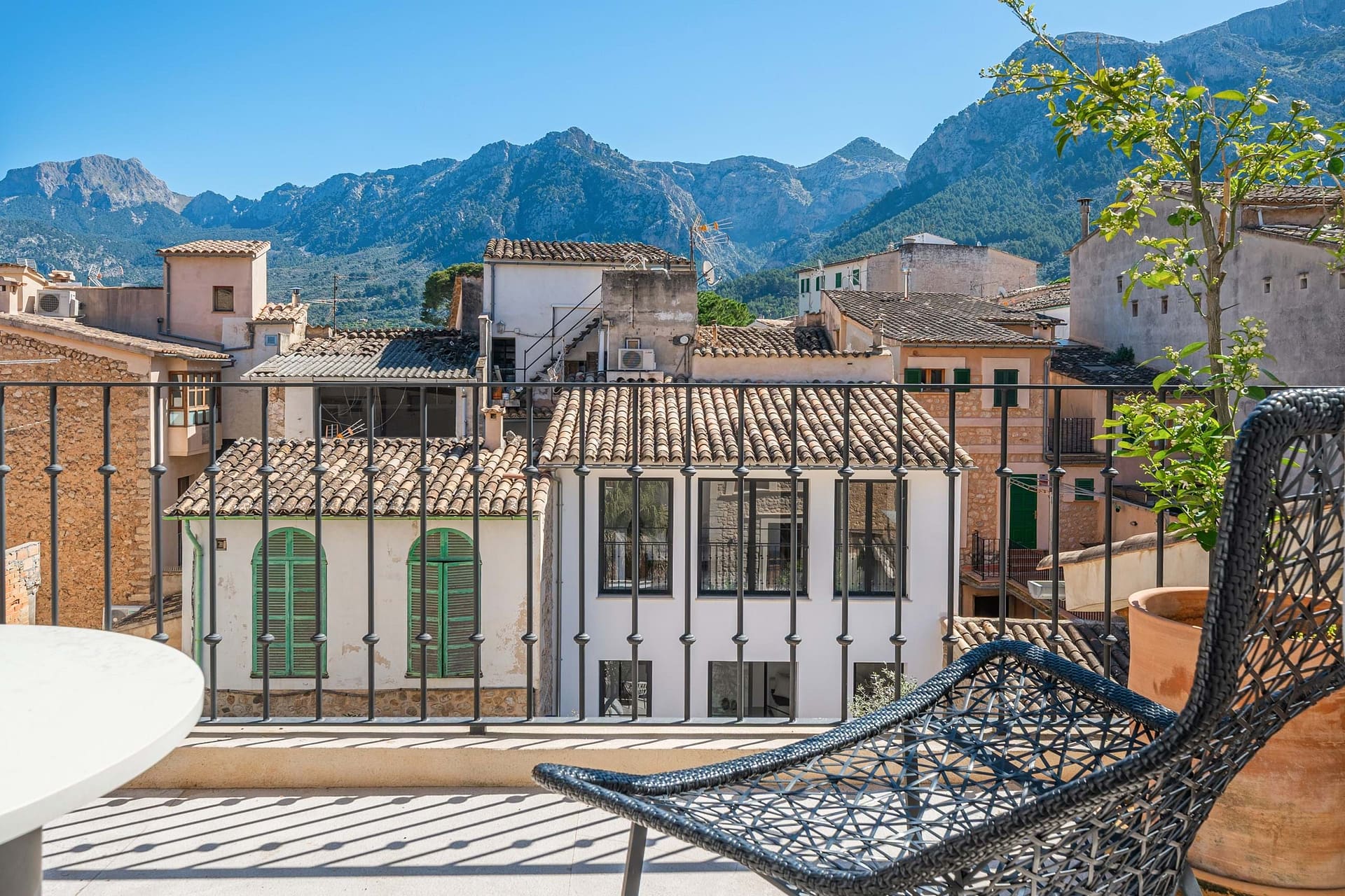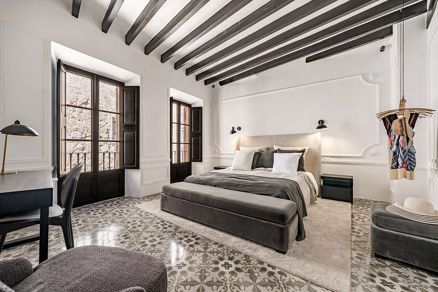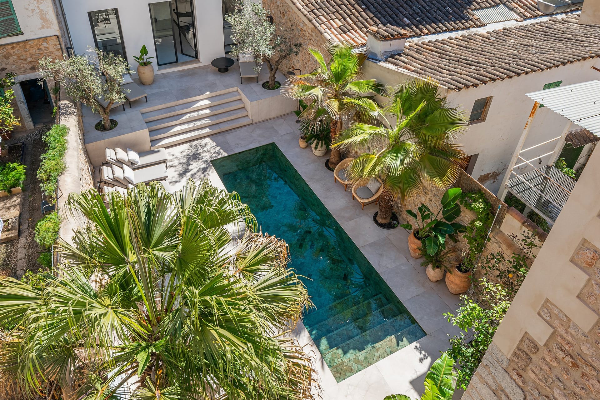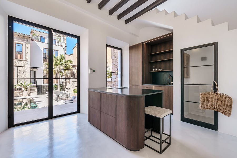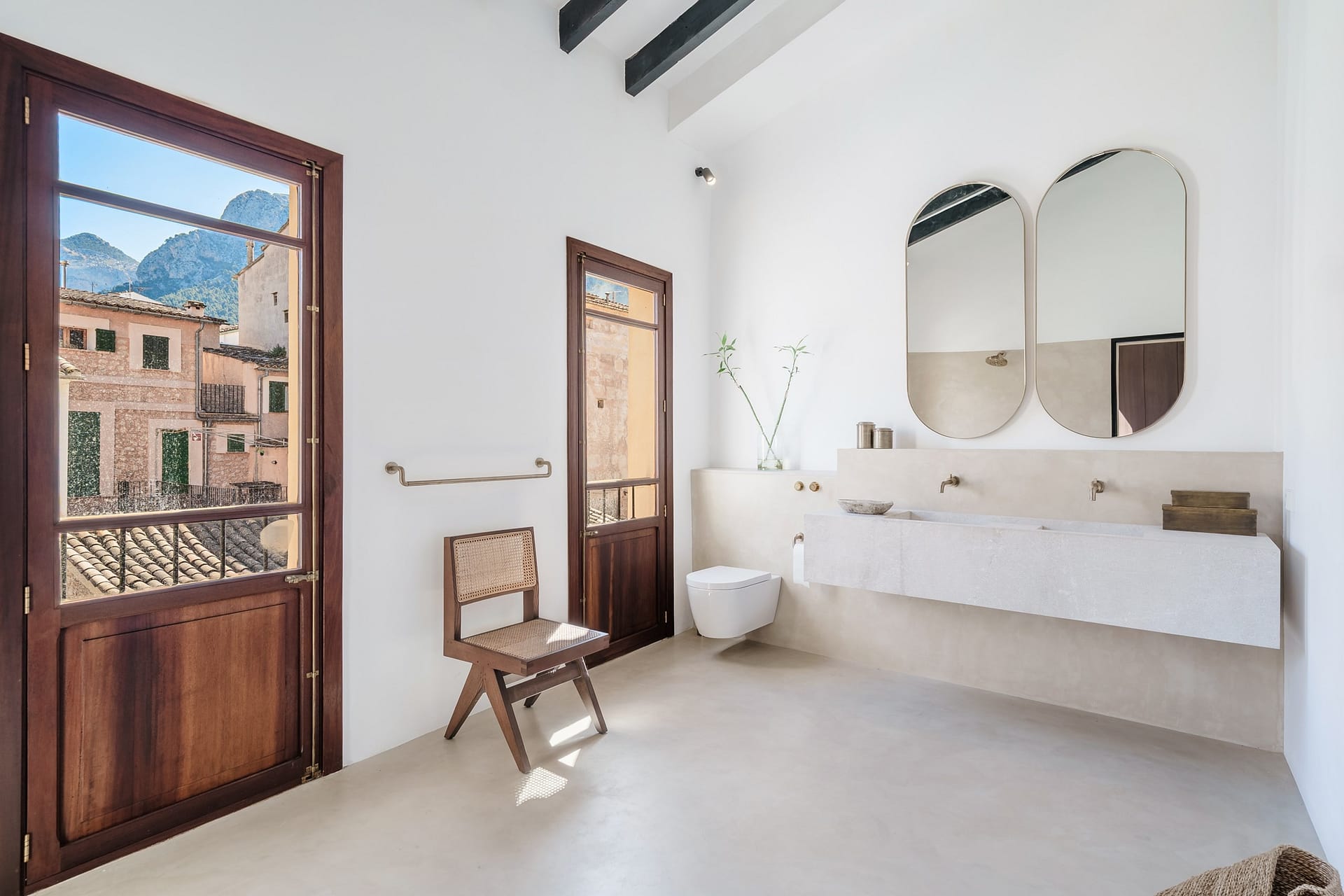 Palazzo Bartomeu in Sóller is a flawless example of late neoclassical architecture, demonstrating an impressive fusion of traditional elements with Scandinavian design elegance. The beautifully restored stone facade contrasts with the sleek, modern interiors, displaying a handcrafted Danish kitchen in smoked oak, and bathrooms with Mallorcan stone sinks. A 10-meter-high staircase with a glass dome illuminates the interior, while luxurious features like Gaggenau and Miele appliances elevate the living experience. The guest house, with its minimalist Bauhaus style, offers a refined retreat with a wine cellar, kitchen, and en-suite bedroom.