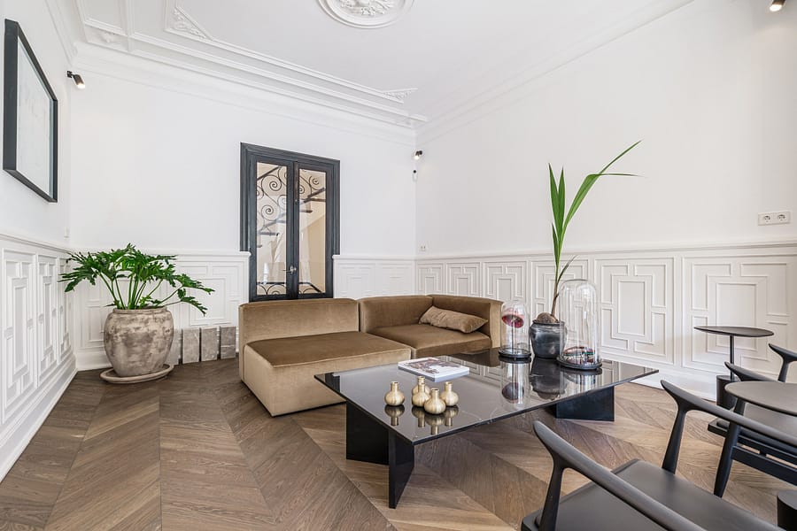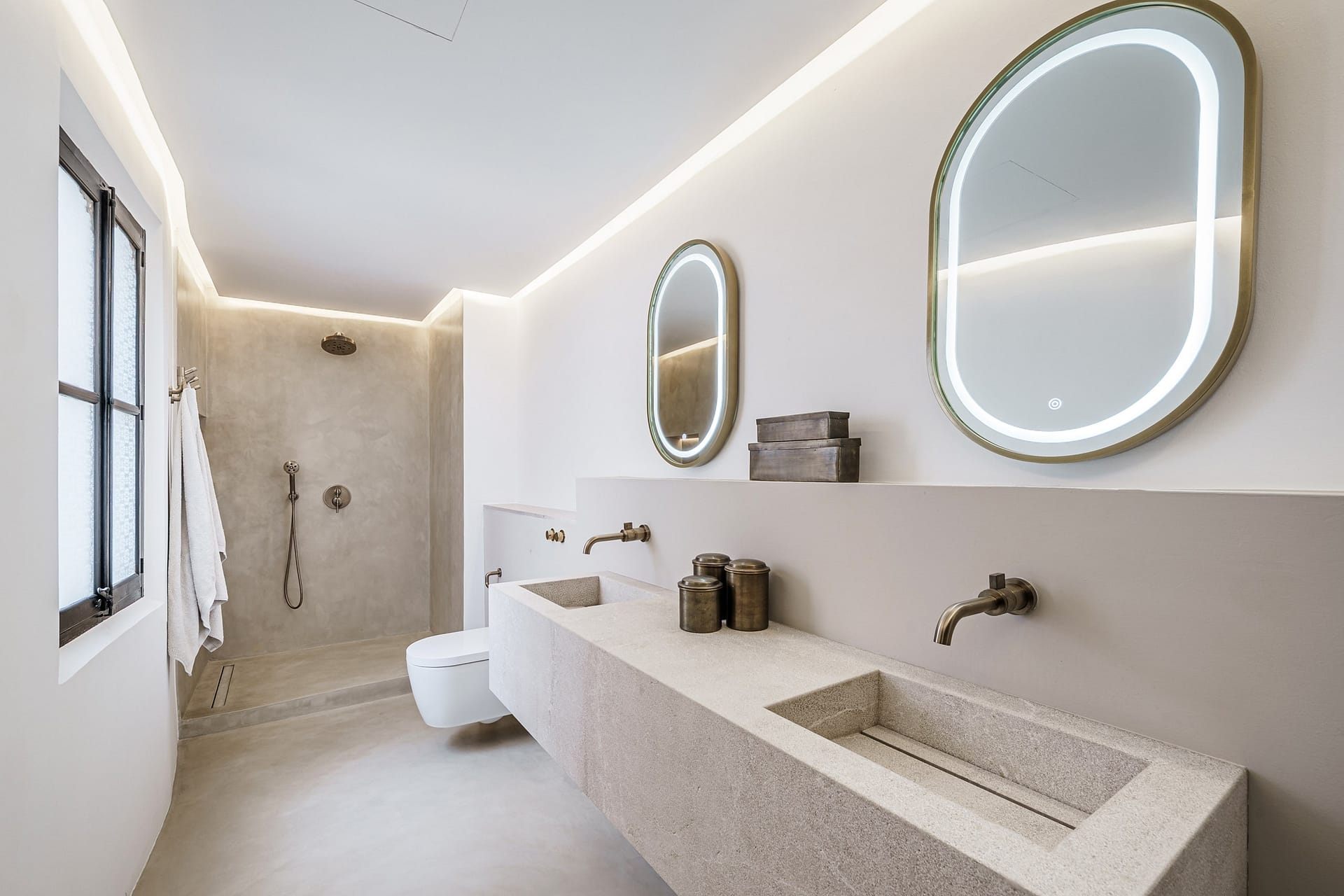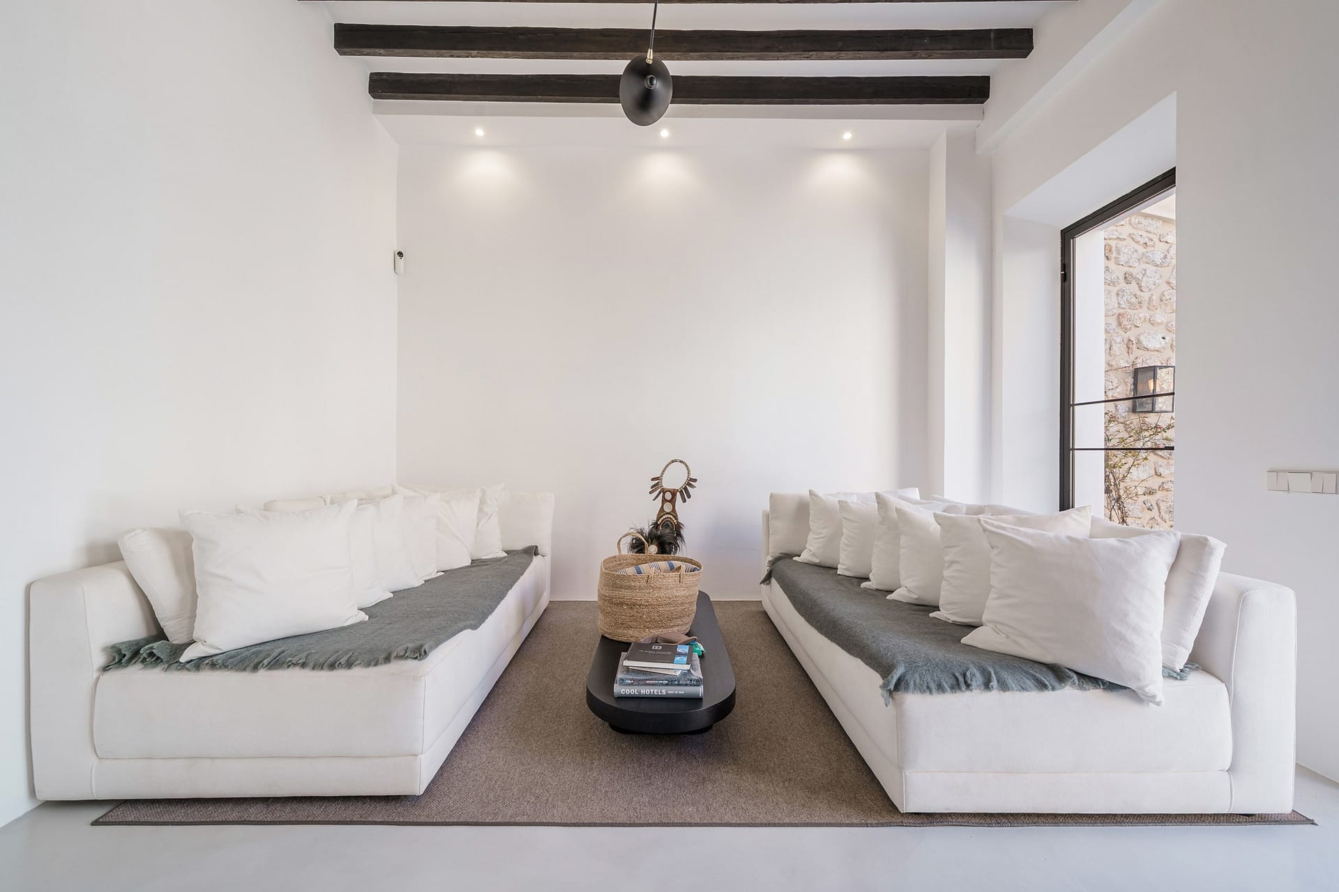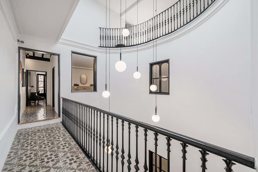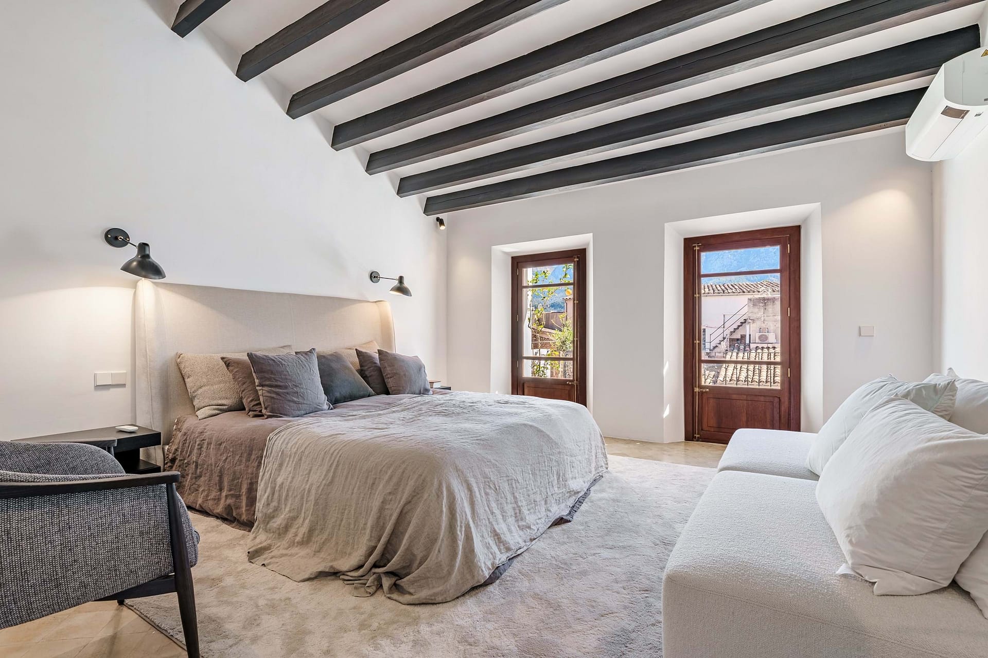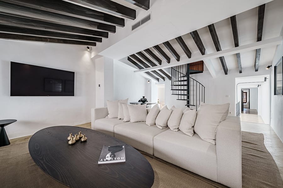 Palazzo Bartomeu in Sóller is a flawless example of late neoclassical architecture, demonstrating an impressive fusion of traditional elements with Scandinavian design elegance. The beautifully restored stone facade contrasts with the sleek, modern interiors, displaying a handcrafted Danish kitchen in smoked oak, and bathrooms with Mallorcan stone sinks. A 10-meter-high staircase with a glass dome illuminates the interior, while luxurious features like Gaggenau and Miele appliances elevate the living experience. The guest house, with its minimalist Bauhaus style, offers a refined retreat with a wine cellar, kitchen, and en-suite bedroom.