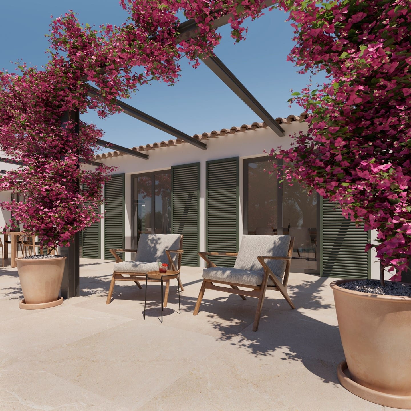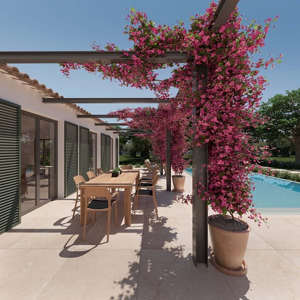 The generous 14,200 m² plot comes with a fully approved project and building license, including beautifully designed landscaping, allowing you to start building immediately. The planned residence offers approximately 414 m² of constructed area, all thoughtfully distributed on one level for effortless living. The design features three spacious en-suite bedrooms, a guest W/C, a bright open-plan living and dining area, a modern kitchen with additional storage space, and a seamless indoor-outdoor flow. Large openings lead onto expansive terraces and a private 30 m² swimming pool, perfectly designed to enjoy Mallorcas Mediterranean lifestyle all year round.