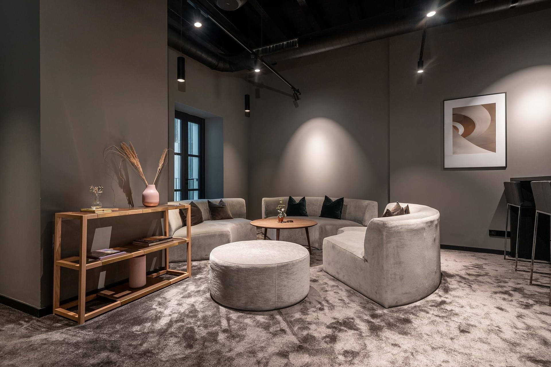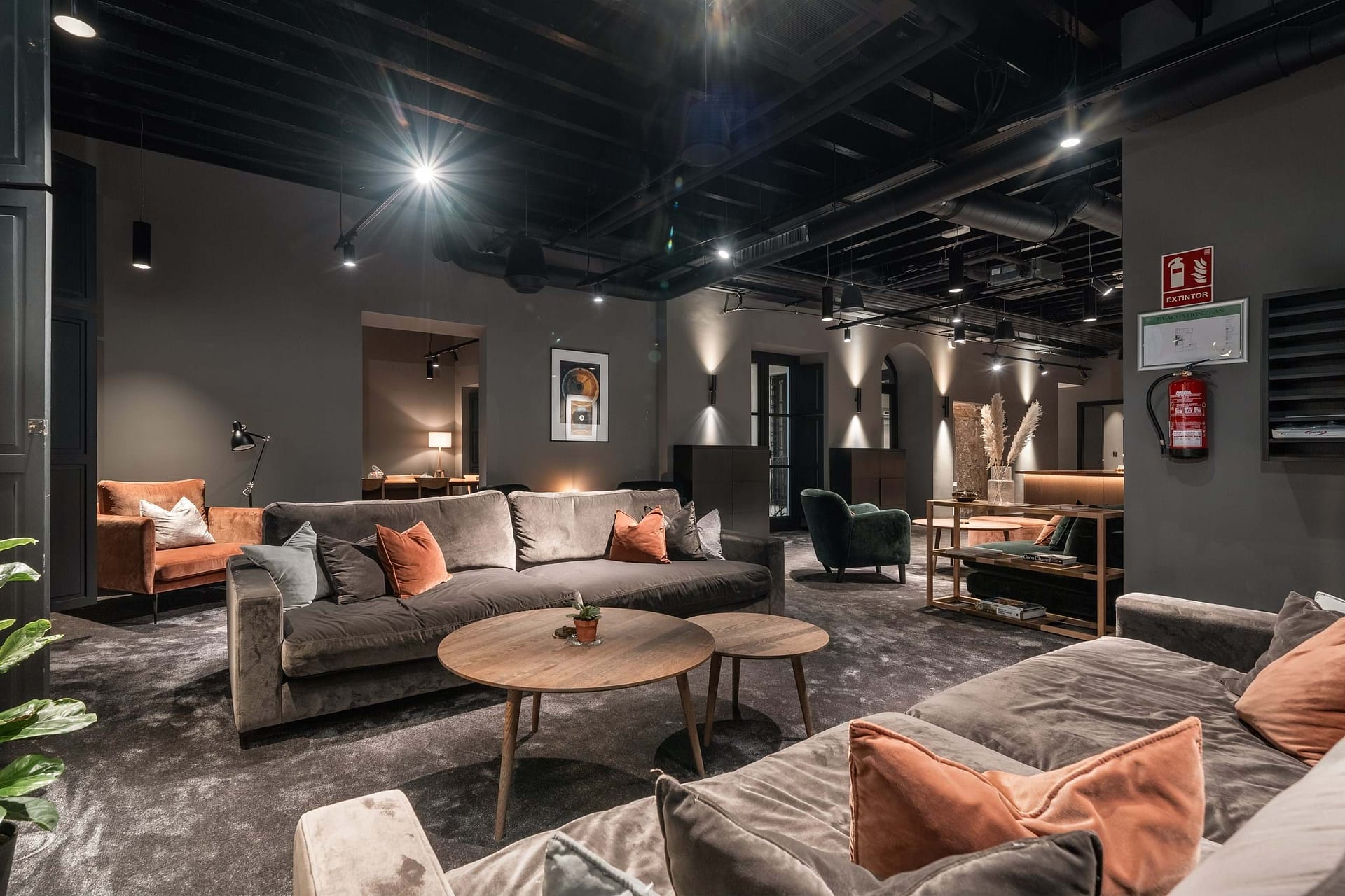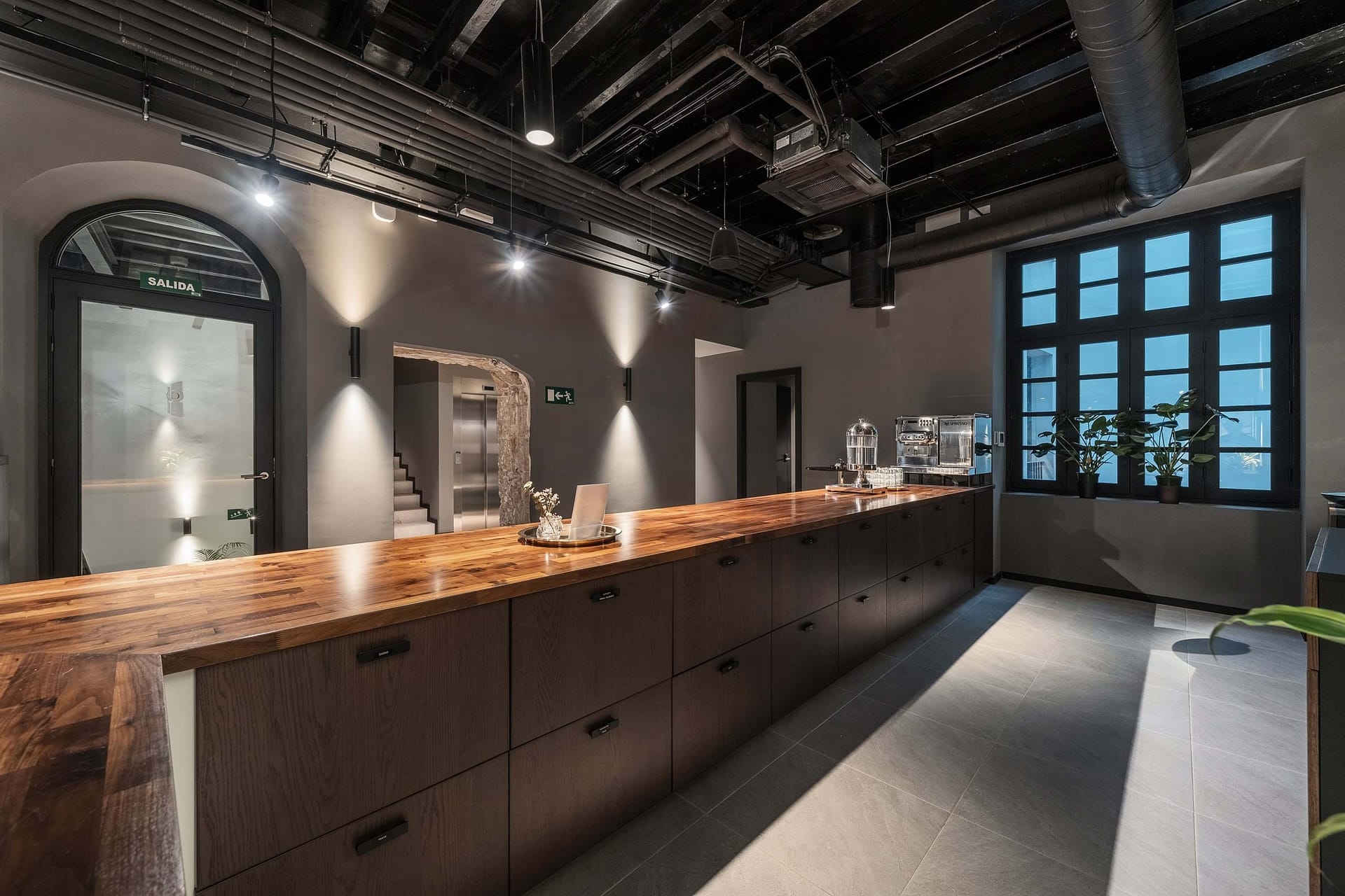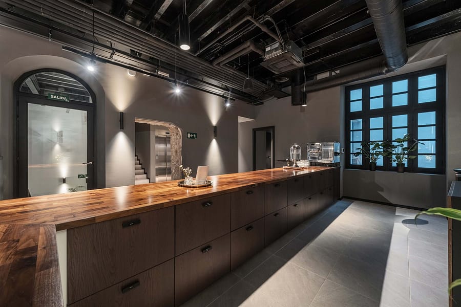 The property offers five floors of versatile spaces, including two expansive terraces, a bright glass-roofed courtyard, fully equipped kitchens, elegant lounge areas, and modern meeting rooms. A stunning rooftop terrace provides panoramic views of the Cathedral and is complemented by an additional smaller terrace, creating a unique and captivating feature.