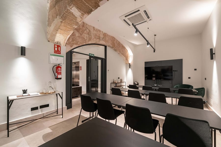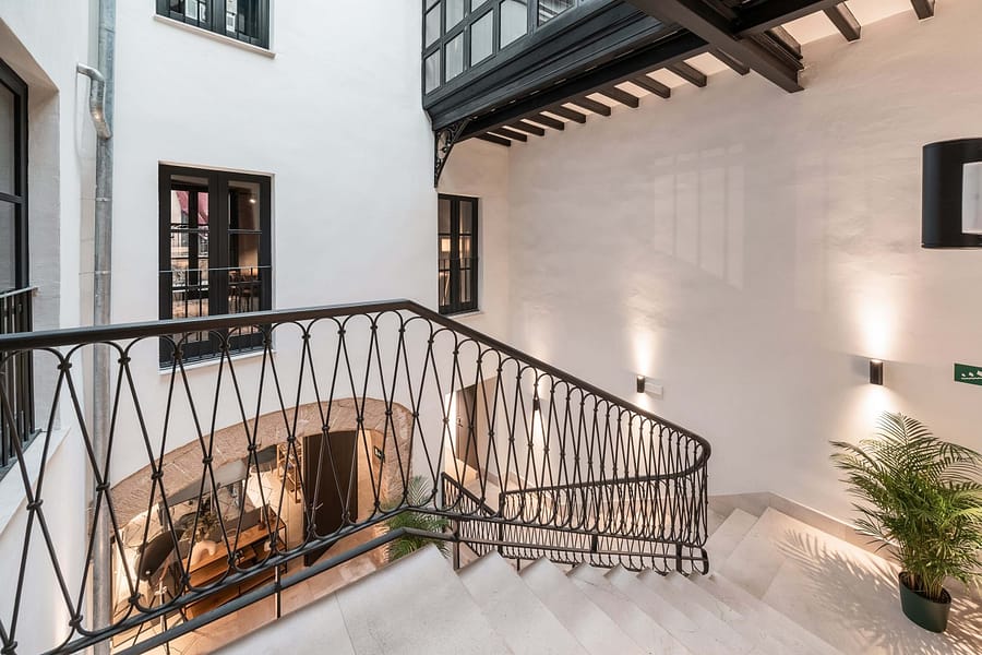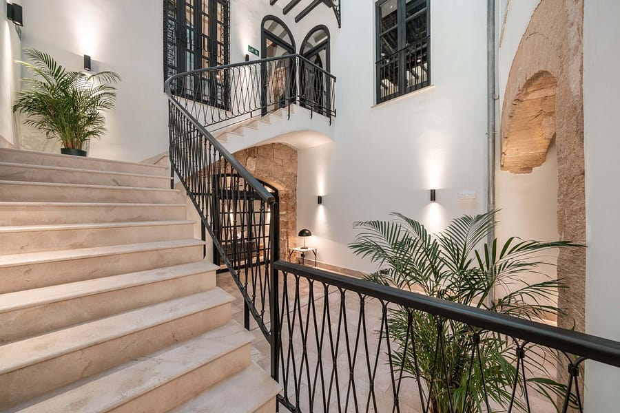 Located in La Lonja, adjacent to the iconic Cathedral de Mallorca and the vibrant Placa de la Reina, this meticulously refurbished palace spans approximately 850m², combining historic elegance with modern technology. Visitors are welcomed by a charming traditional patio and staircase, while a discreet elevator provides seamless access to all levels.