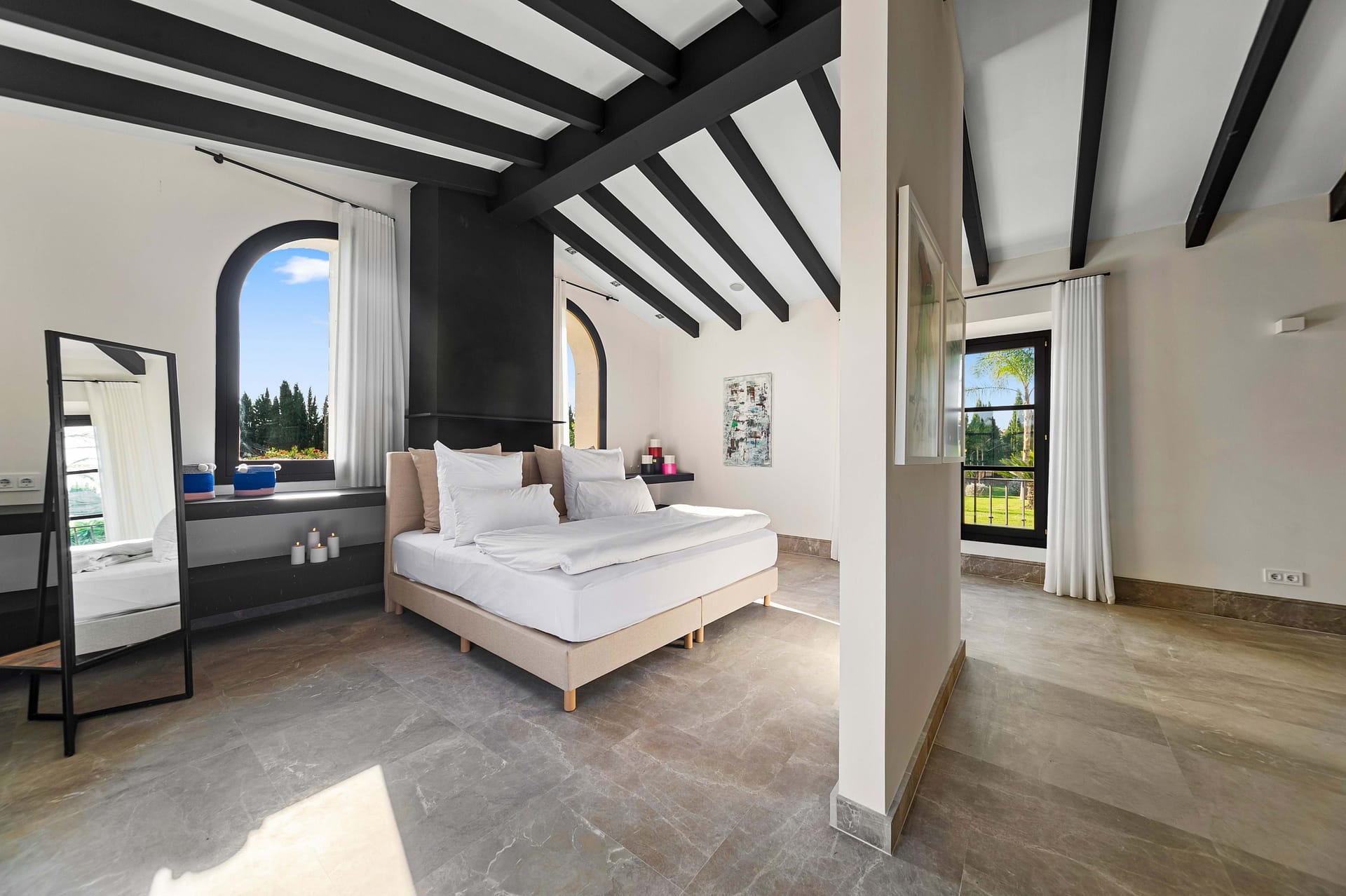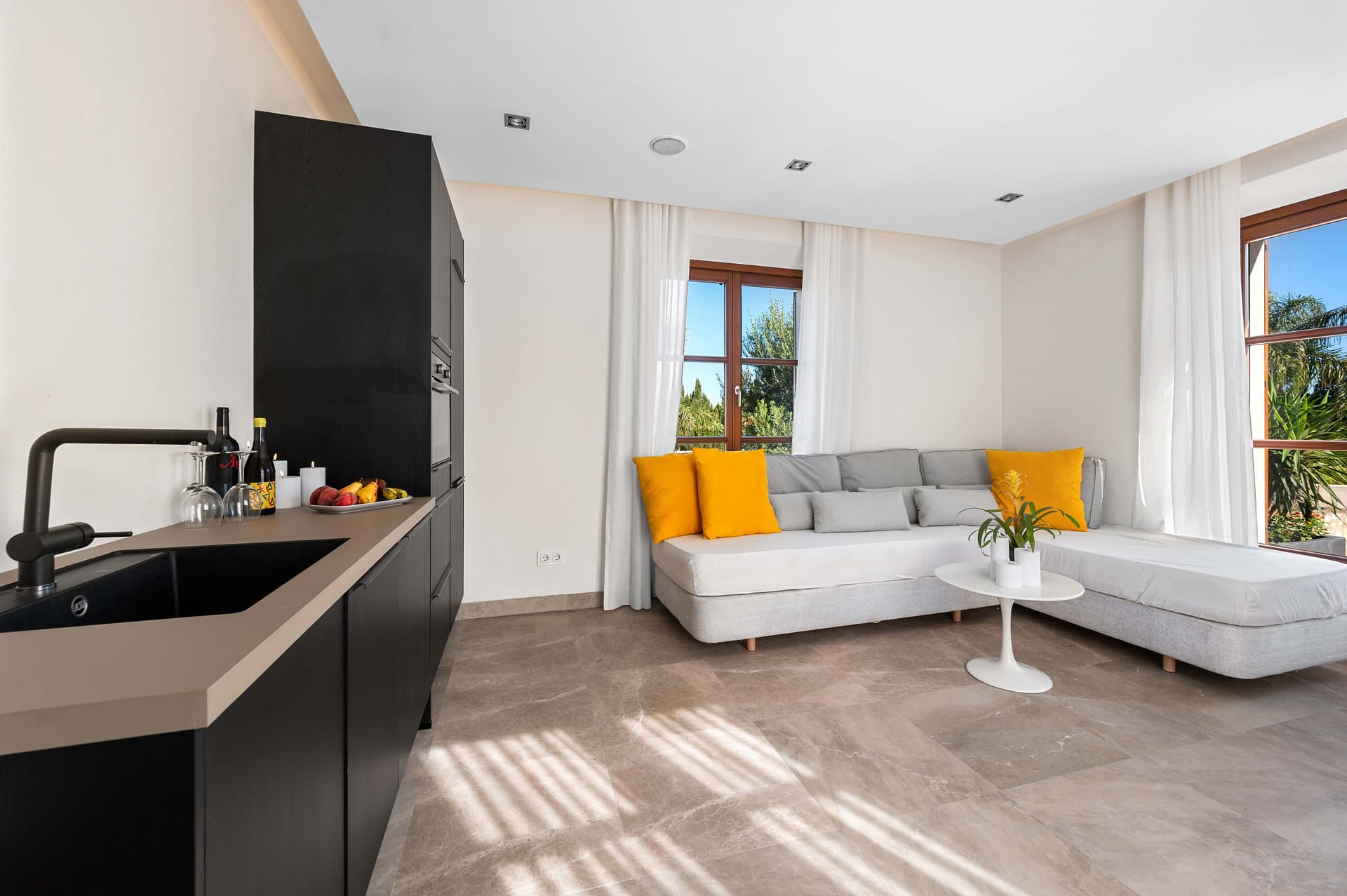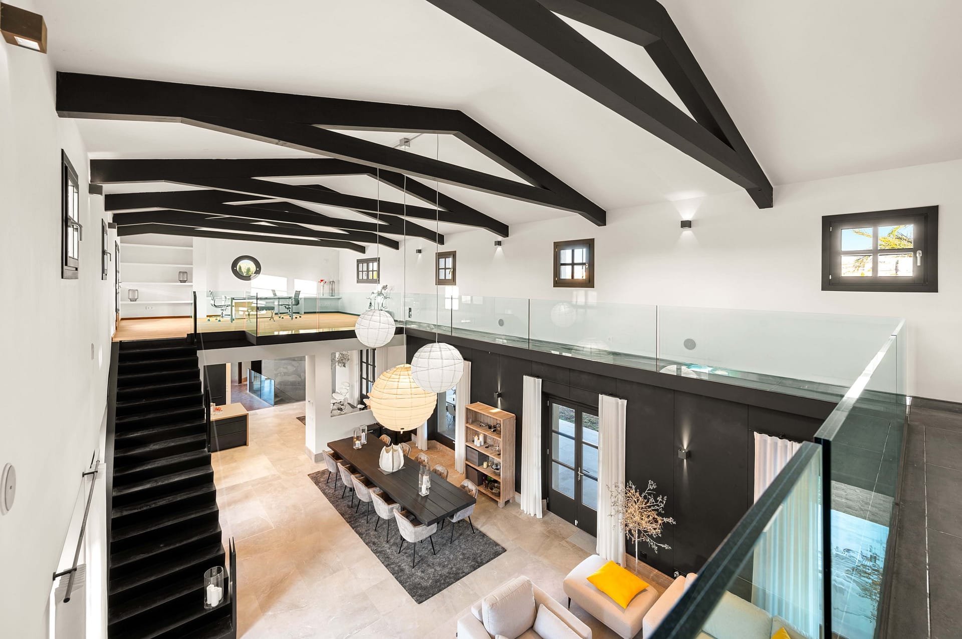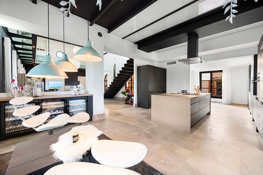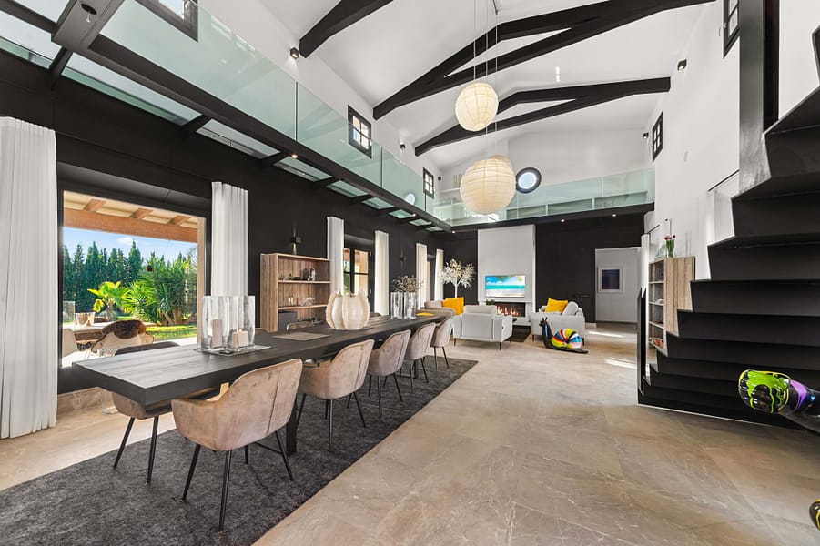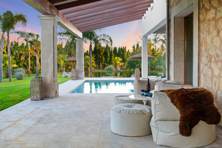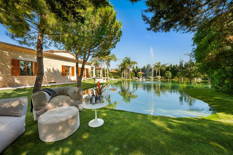 Nestled on a tranquil hillside in the charming village of Montuiri, in the vibrant heart of Mallorca, this breathtaking finca stands as a beacon of luxury and tradition. Spanning over 20,000 square meters, the estate beautifully marries classic Mallorcan architecture with the height of modern sophistication, having been meticulously restored in 2023 to cater to every contemporary need while preserving its storied essence. The main residence unfurls across two exquisitely designed levels, offering a vast tapestry of living spaces that include a spacious basement and several floors dedicated to relaxation and entertainment. This haven features five luxurious bedroomseach a sanctuary in its own right. The master suite offers sweeping views that capture the lush landscape and azure skies, while the VIP bedroom and another with an en-suite afford privacy and plush comfort. Two additional bedrooms share a tastefully appointed bathroom, creating a welcoming retreat for family and guests alike. For those desiring a secluded escape, the guest apartment presents a charming haven with a cozy salon, kitchenette, and private bathroom, ensuring a delightful stay. Each room boasts modern comforts such as built-in air conditioning, heat pumps, and underfloor heating, providing a warm embrace throughout the seasons. Sustainability is at the heart of this estate, equipped with ample solar units, a private water source, and high-speed Starlink Internet WiFi, ensuring you stay connected to the world while enjoying a secluded paradise. The estate’s interior charm is augmented by an enchanting wine cellar and sophisticated office space, with floors paved in lush Binisalem stone that narrate the rich heritage of the island with every step. Step outside to experience a verdant oasis where the scent of blooming flowers fills the air and the gentle sun caresses your skin. The stunning swimming pool, elegantly appointed garden house, and a natural reservoir for air-treated water offer perfect settings for sun-drenched afternoons or chic evening gatherings amidst manicured landscapes. Montuiri, a mere 30 km from Palma, offers an authentic slice of rural Mallorcan charm. Its quaint stone windmills and peaceful ambiance are complemented by local restaurants serving traditional cuisine, small boutiques, and cultural festivals that showcase the rich history and vibrant community spirit of the area. This finca is more than just a home; it is a lifestyle sanctuary where luxury meets tranquility and comfort. Embrace this rare opportunity to own a piece of paradise in Montuiri, where sophistication harmonizes with purpose and passion, crafting an unparalleled living experience.