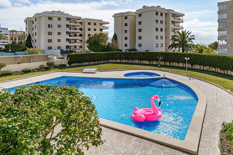 This stylish apartment for sale in Portals Nous, Mallorca is ideally located in one of the most desirable residential areas in the southwest of the island, just moments from the prestigious marina of Puerto Portals. Set within a well-maintained community with a swimming pool, the property enjoys partial sea views and a pleasant outlook over landscaped communal gardens.