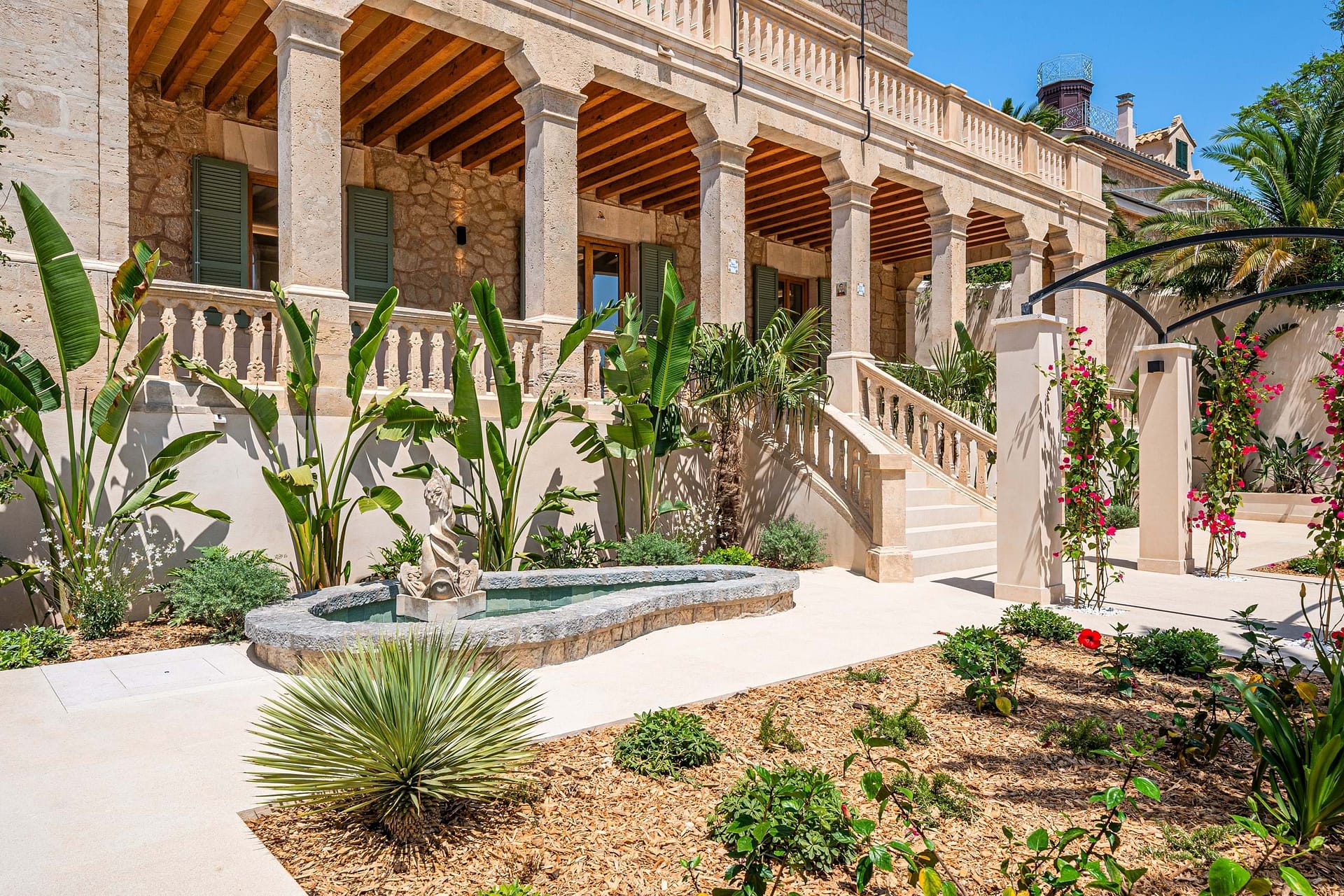 Nestled at the foot of Bellver Castle in the prestigious El Terreno neighborhood of Palma, this exceptional villa, originally built in 1920, has been completely reimagined to blend Mediterranean tradition with contemporary design. Surrounded by lush gardens and offering dedicated spaces for a swimming pool and Jacuzzi, this property is a haven of tranquility and sophistication.