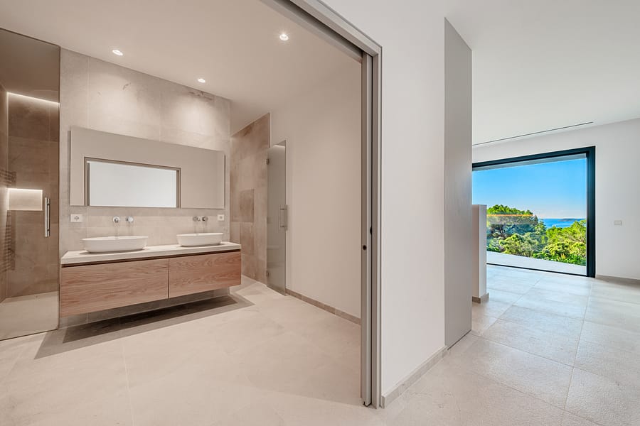 Introducing a Masterpiece in Costa d’en Blanes: A Luxurious Haven with Breathtaking Views Nestled in the prestigious Costa d’en Blanes, this newly constructed luxury villa stands as a testament to contemporary elegance harmoniously blending with the awe-inspiring allure of Majorca. Boasting stunning vistas of the azure sea, this property offers an unparalleled living experience. With four generously sized bedrooms and four modern bathrooms, along with an additional guest toilet, this villa is tailored to accommodate both comfort and style. The open, luminous interiors seamlessly merge with the scenic beauty outside, creating an ambiance that is as inviting as it is inspiring. Occupying an expansive plot of approximately 1,160 square meters, the villa encompasses a spacious living area spanning approximately 445 square meters, meticulously crafted to perfection. The heart of the home, the fully fitted kitchen, is equipped with top-of-the-line appliances, ensuring every culinary experience is nothing short of extraordinary. Beyond its lavish interiors, the property encompasses a large garage and ample parking area, perfectly catering to the needs of the discerning homeowner. Additionally, a private gymnasium provides an exclusive space for wellness enthusiasts to indulge in their fitness routines without leaving the comfort of their home. The pice de rsistance is the luxurious swimming pool, enveloped by meticulously landscaped gardens and inviting terraces that offer panoramic views extending as far as the eye can see. Every moment spent here is elevated by the enchanting scenery, making it an ideal setting for both relaxation and entertainment. Immerse yourself in the epitome of opulence and comfort seize the opportunity to transform this magnificent villa into your new home. Discover the epitome of luxury living in Costa d’en Blanes.