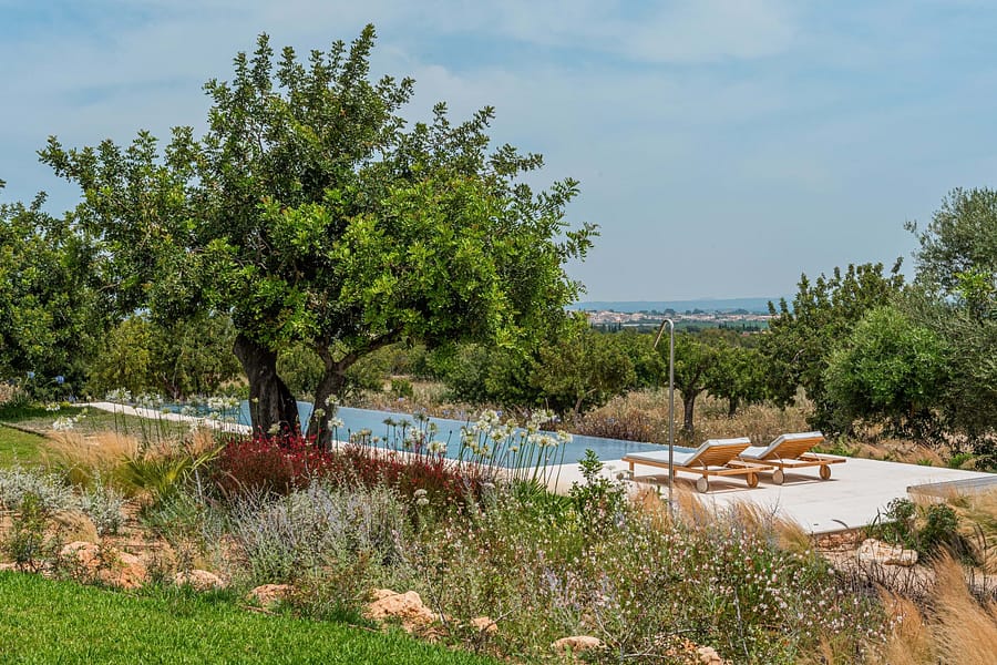A truly unique feature is the 3,750 m² vineyard, planted with the indigenous Mallorcan grape variety Prensal. Vineyard care and wine production are managed in collaboration with the renowned Jaume de Puntiró winery in Santa Mariayielding around 40 exclusive bottles of wine per year, reserved solely for the owner.