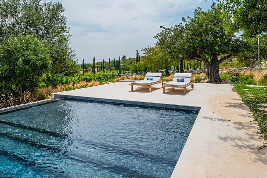 A truly unique feature is the 3,750 m² vineyard, planted with the indigenous Mallorcan grape variety Prensal. Vineyard care and wine production are managed in collaboration with the renowned Jaume de Puntiró winery in Santa Mariayielding around 40 exclusive bottles of wine per year, reserved solely for the owner.