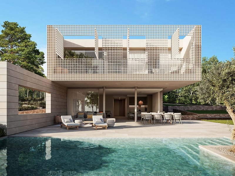 Villa 3 is a bold, design-forward home that balances dramatic lines with warm, livable interiors. With over 670 m² of built interior space across three levels, its one of the most spacious homes in the collection ideal for those who appreciate architectural substance and generous proportions.