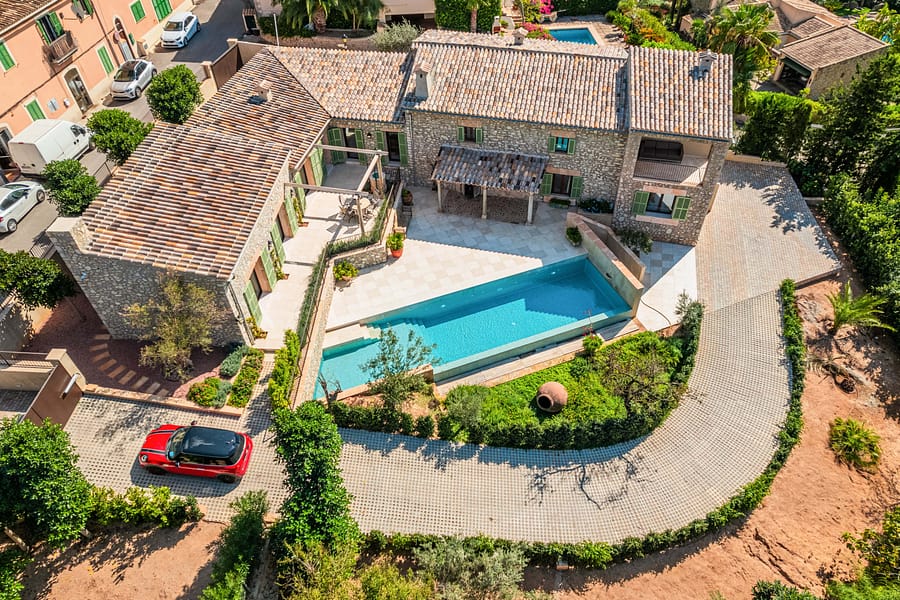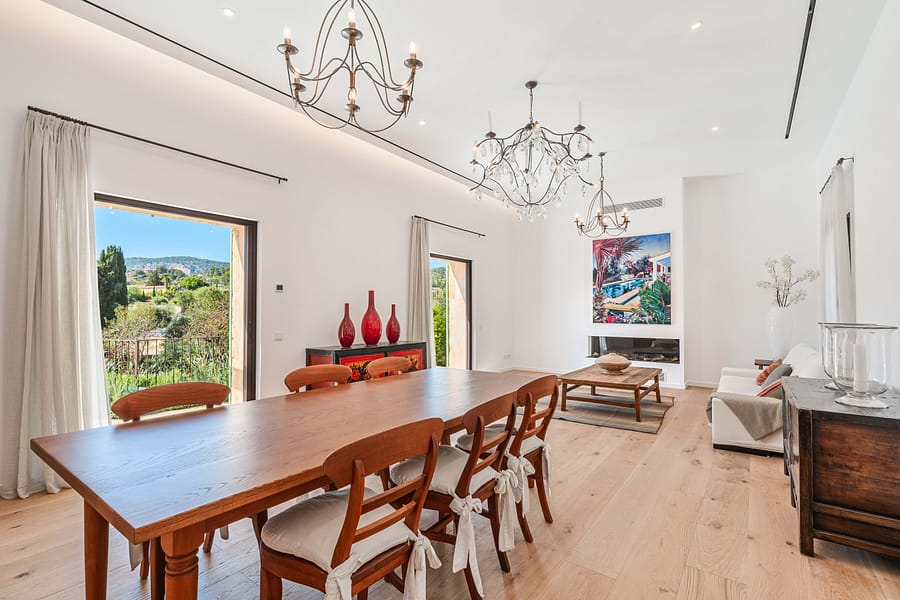 This remarkable property seamlessly combines traditional “finca” charm with all the modern luxuries and technological conveniences that define contemporary luxury living. Nestled on an expansive 1723-square-meter plot, the outdoor expanse features a generously sized pool that harmonizes perfectly with the breathtaking mountain views of Es Capdella, creating an irresistible invitation to bask in the Mediterranean sun and unwind. The spacious living space of 500 square meters means finca offers ample room for both comfortable living and elegant entertaining. The expansive living room, seamlessly connected to the outdoor terrace, and a fully equipped kitchen with a dining area that opens directly to the outdoors amplify the sense of space and connectivity. The property has 5 bedrooms, each accompanied by its own en-suite bathroom, providing an oasis of comfort and seclusion for you and your cherished ones. Every corner of this residence reflects meticulous attention to detail, from the refined finishes to the thoughtfully designed layout. Additional amenities include a convenient guest toilet, a generously proportioned laundry room, and storage facilities catering to all your needs. Furthermore, the finca offers parking for up to 4-5 vehicles, ensuring convenience and comfort for both you and your guests. Situated in the coveted Es Capdella, you’ll enjoy the serenity of countryside living while maintaining easy access to the vibrant rhythm of urban life. Mallorca’s enchanting beaches, quaint villages, and exceptional dining establishments are just a short drive away, promising all opportunities to enjoy a Mediterranean lifestyle. Reach out to us today to arrange a viewing and embark on the journey toward realizing your dream finca.
