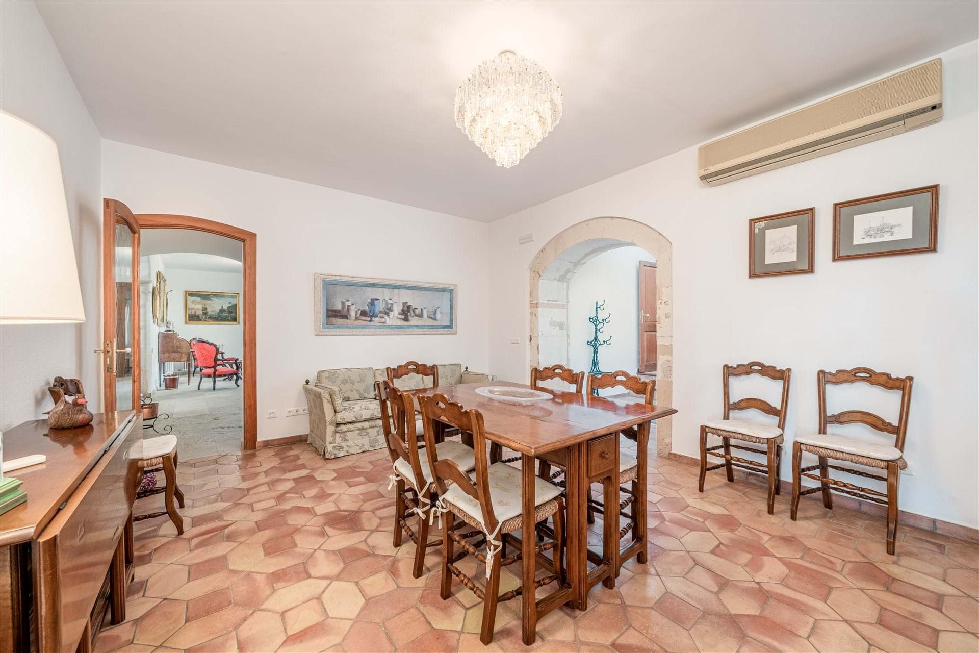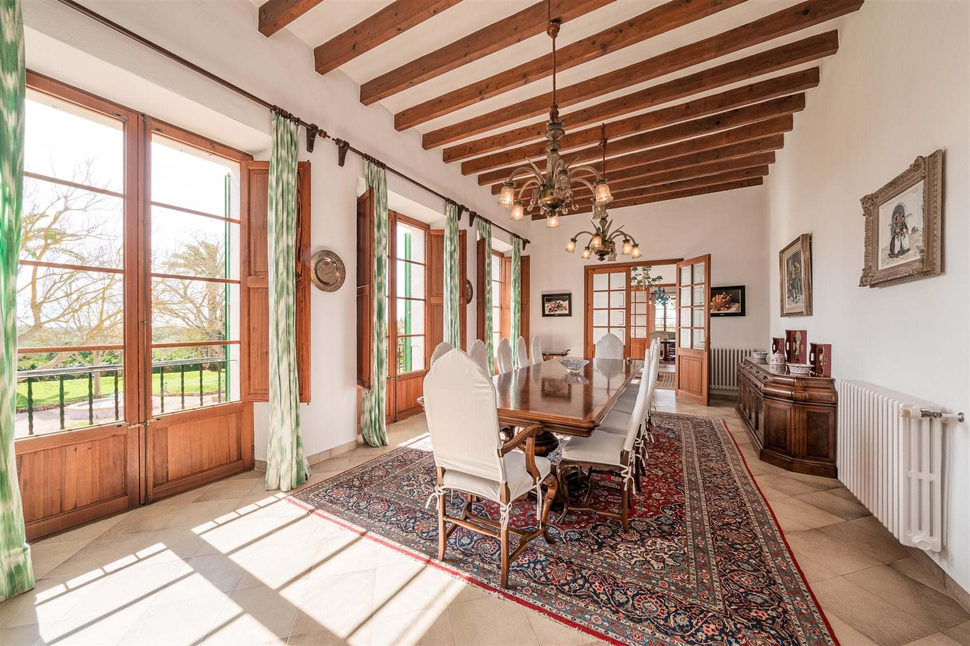 Nestled amidst 140 hectares of land lies a truly serene oasis. The impressive main villa, which dates back to the 15th century, boasts a sprawling living space of 1,780 square meters. Featuring nine bedrooms, each equipped with its own en-suite bathroom – one bedroom is even specially adapted for disabled individuals. The ground floor and first floor offer a variety of living and dining areas, as well as multiple terraces, perfect for enjoying the picturesque surroundings. The building is equipped with central heating and features stunning traditional wooden doors and windows, antique stone arches, marble and terracotta flooring. The garden, sprawling over approximately 5,800 square meters, is a lush and tranquil retreat with Mediterranean foliage. In addition to the main villa, there are various annex buildings, garages, and other amenities. A mere 50 meters from the main villa sits the guest villa, offering a living space of 640 square meters. This secondary building features four bedrooms, four bathrooms, a guest toilet, and a service apartment with a bathroom. Its private garden spans around 1,400 square meters and boasts a refreshing outdoor pool. The estate is also home to a charming chapel, extensive gardens, and both indoor and outdoor swimming pools. Thanks to several refurbishments, all original details have been preserved, and the buildings are in excellent condition. The property features numerous covered sheds for livestock management, various barns, storehouses, and stables, with a total area of nearly 7,000 square meters. With a few modifications, these buildings could be utilized for wine production, livestock keeping, or a variety of other purposes. The property holds a license for agritourism, allowing for up to 26 guests, as per Tourism regulations. The sprawling rural farm occupies approximately 140 hectares of flat land and features medium and low-voltage electricity.Â