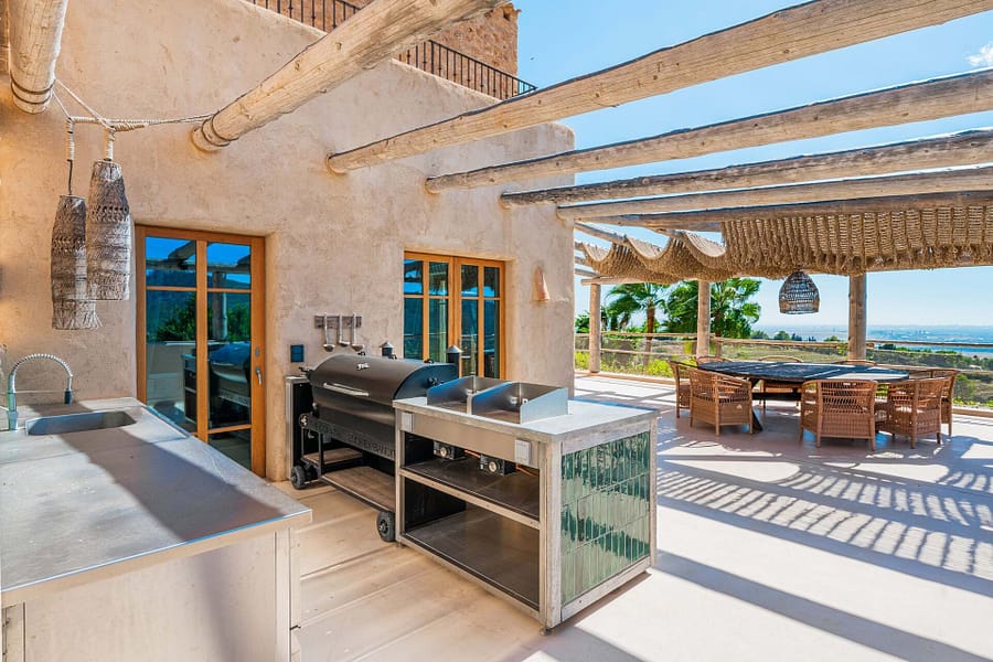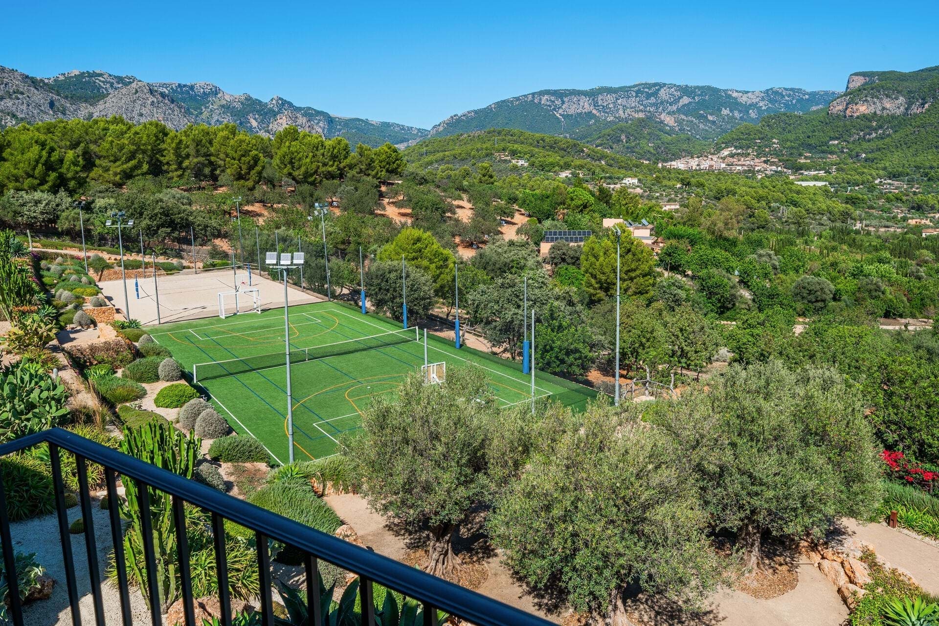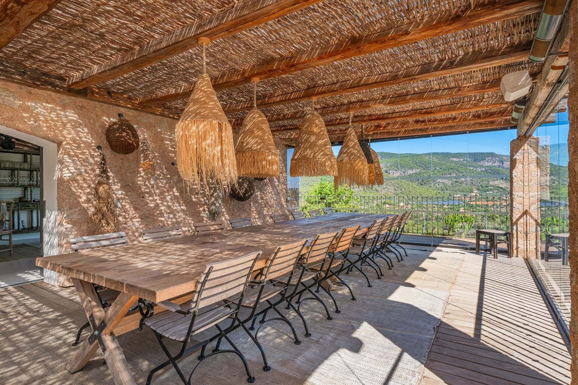 Set within 25 hectares of breathtaking Mediterranean landscape, Torre del Sol offers a seamless fusion of luxury, privacy, and nature. Overlooking the Serra de Tramuntana and the sea beyond, this extraordinary estate is designed for those who seek tranquility without compromise. Six beautifully crafted fincas, 29 individually designed bedrooms, blending the warmth of natural materials with influences from Morocco, Bali, and Mykonos. Expansive indoor and outdoor living spaces flow effortlessly, from the dining room with a fireplace to panoramic rooftop terraces, a professional-grade kitchen and a cigar lounge. For ultimate relaxation, a heated 20-meter infinity pool, sauna, and cinema provide quiet indulgence, while a fully equipped indoor and outdoor gym, sand volleyball along with a multifunctional sports court, elevate wellness and recreation. Lush gardens, fruit trees, and hidden pathways lead to the farm with alpacas, ponies, and chickens, adding to the estate’s effortless serenity. A truly idyllic retreat for families, corporate gatherings, or destination events. Torre del Sol is perfect for family getaways, business retreats, or special events such as weddings or corporate gatherings. With its unique combination of Mediterranean charm, premium service, and state-of-the-art amenities, this residence offers an extraordinary lifestyle in one of the most beautiful regions of Mallorca. Welcome to Torre del Sol, where luxury, nature, and serenity meet.
