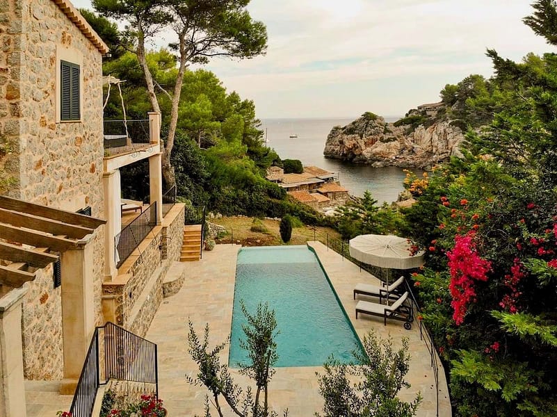 Nestled in the highly sought-after setting of Cala Deià on Mallorcas west coast, this stunning property offers an unparalleled Mediterranean escape. You will be perfectly positioned to enjoy the island’s authentic lifestyle, situated in a tranquil hillside retreat that is part of the Serra de Tramuntana UNESCO World Heritage site. Most importantly, you are just a short walk from the stunning beach and the famous Cala Deià, offering direct access to the crystalline sea. This beautiful villa, surrounded by lush vegetation and tall pine trees, provides complete privacy and absolute tranquility, making it a perfect location to escape the busy pace of city life.