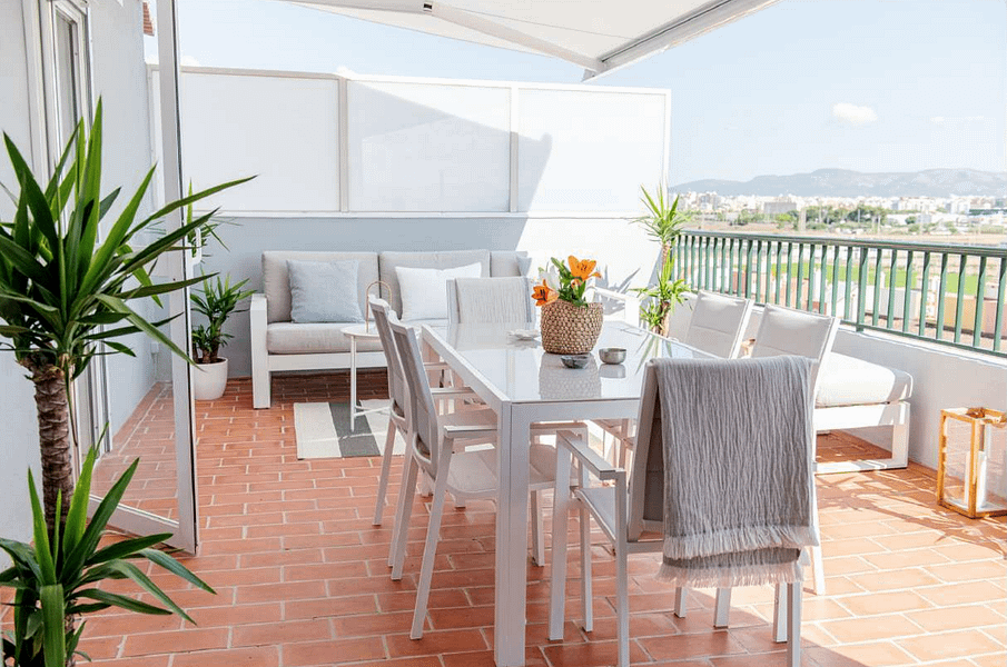 This stylish designer penthouse is located in the sought-after beachside district of Portixol, just 3 km from Palmas city centre and situated only 2 minutes walk from the sea. The property enjoys a peaceful yet central setting just steps from the lively promenade, renowned for its excellent restaurants, cafés, and bars. Portixol has become one of Palmas most desirable coastal districts, perfectly combining Mediterranean charm with urban convenience.