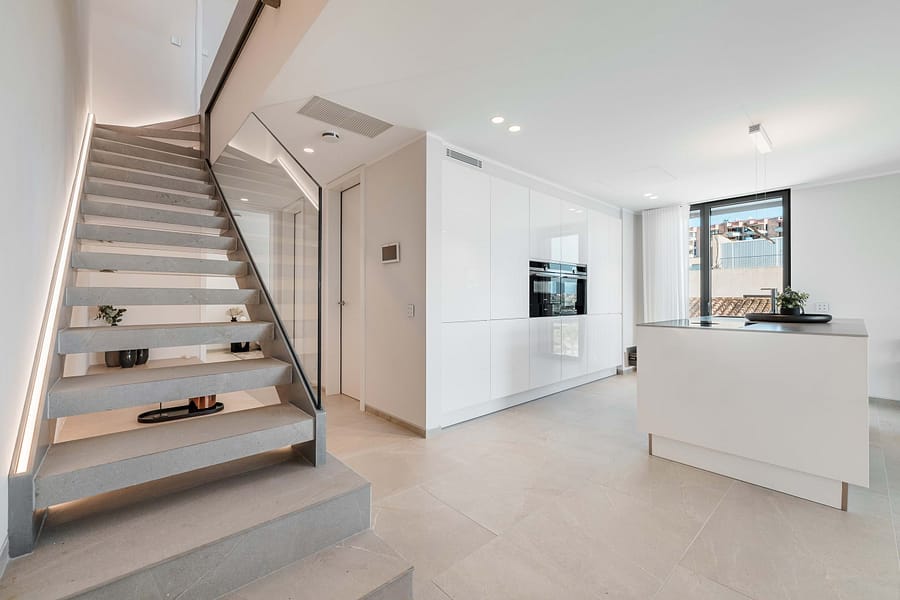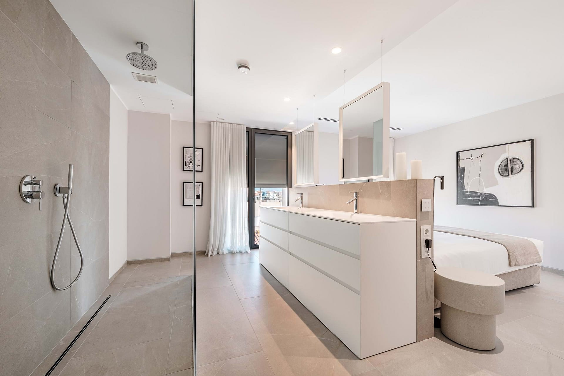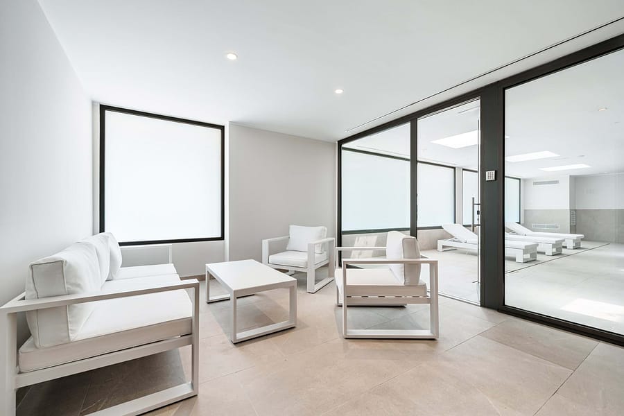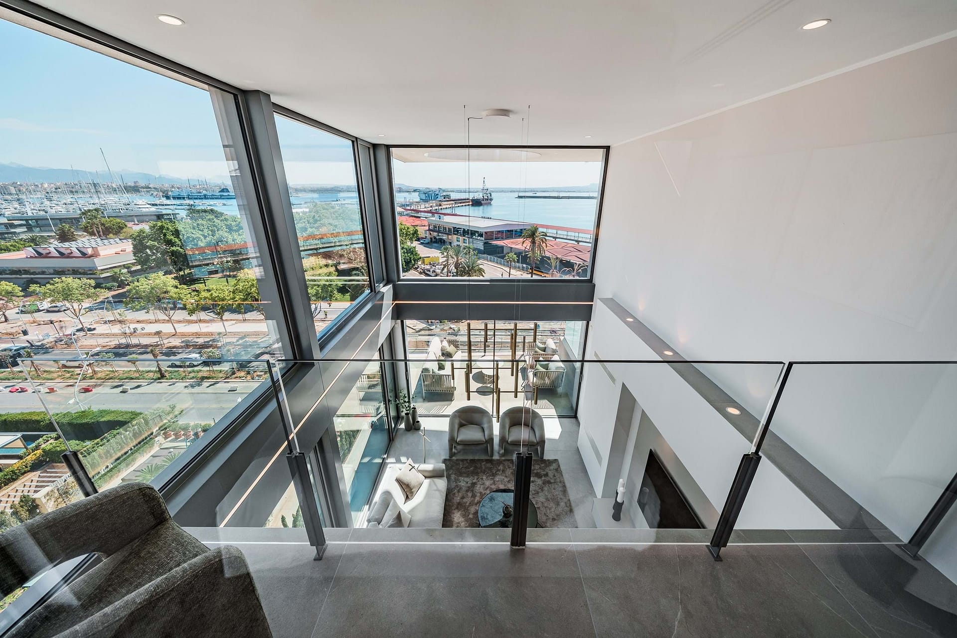 The location is unbeatable, adjacent to the renowned Club de Mar. Minutes from Palma’s city center and a ten-minute drive to the airport. The building’s striking modern design, with its asymmetrical shape, high-quality glass facade, and stone cladding, makes it a landmark.