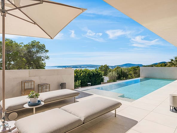 Welcome to a modernist seaview villa in the prime location of Costa den Blanes, just a few minutes from Palma and the renowned marinas of Puerto Portals and Puerto...