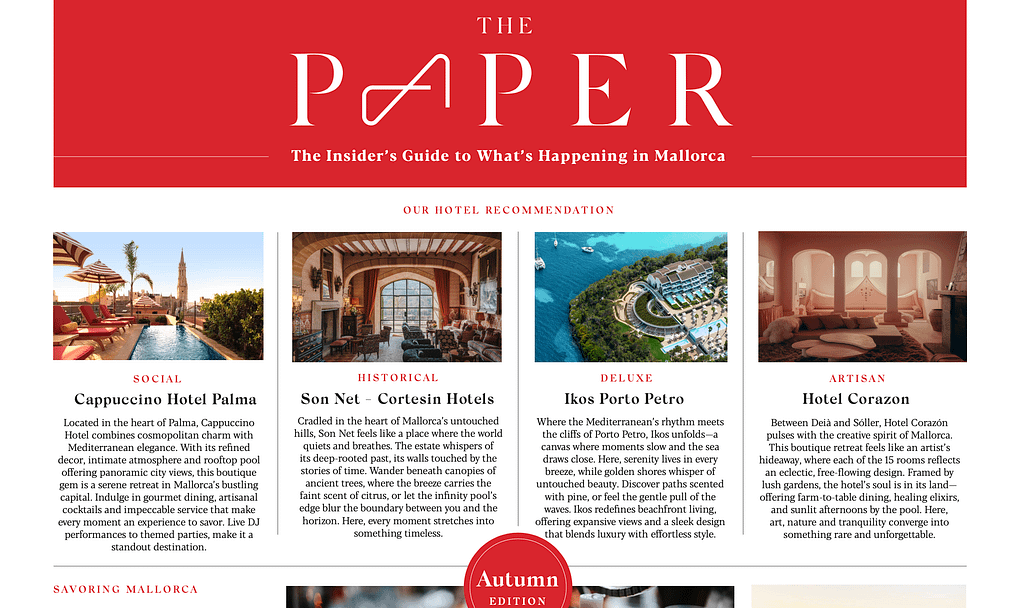 - Hotel Corazón: Situated between Deià and Sóller, this boutique retreat captures the artistic spirit of Mallorca, with farm-to-table dining and lush gardens.